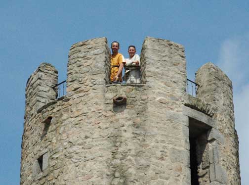Bon .... avant le départ, elle a soif la titine ! Nous allons prendre le ti déjeuner au pied des gorges de la Loire, ou se trouve d'ailleurs un superbe pont qui est le seul pont en France suspendu par une seul poteau