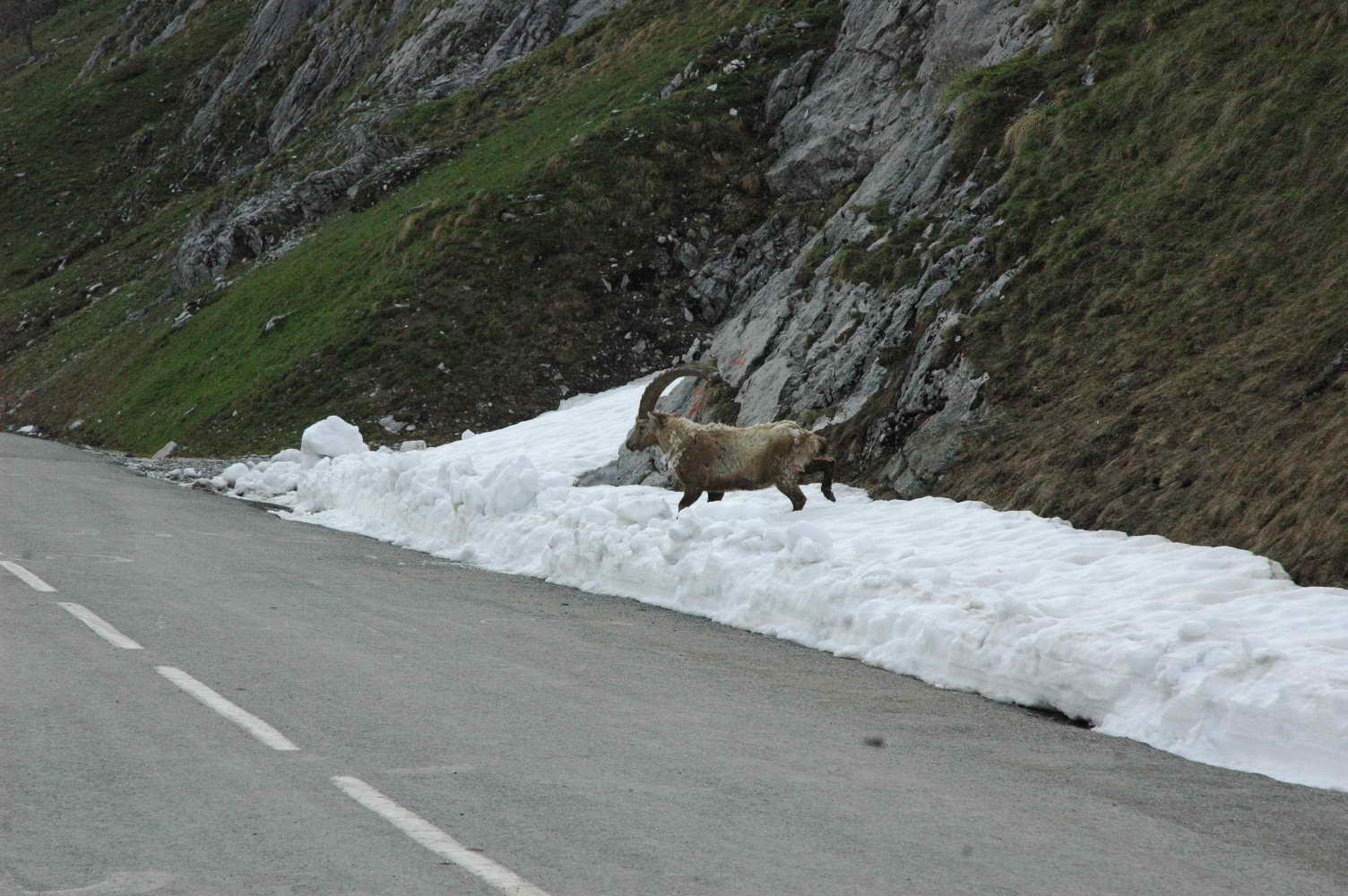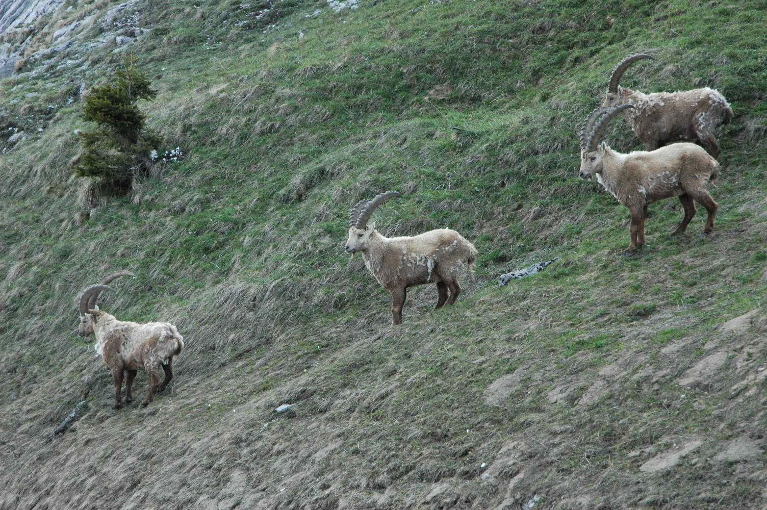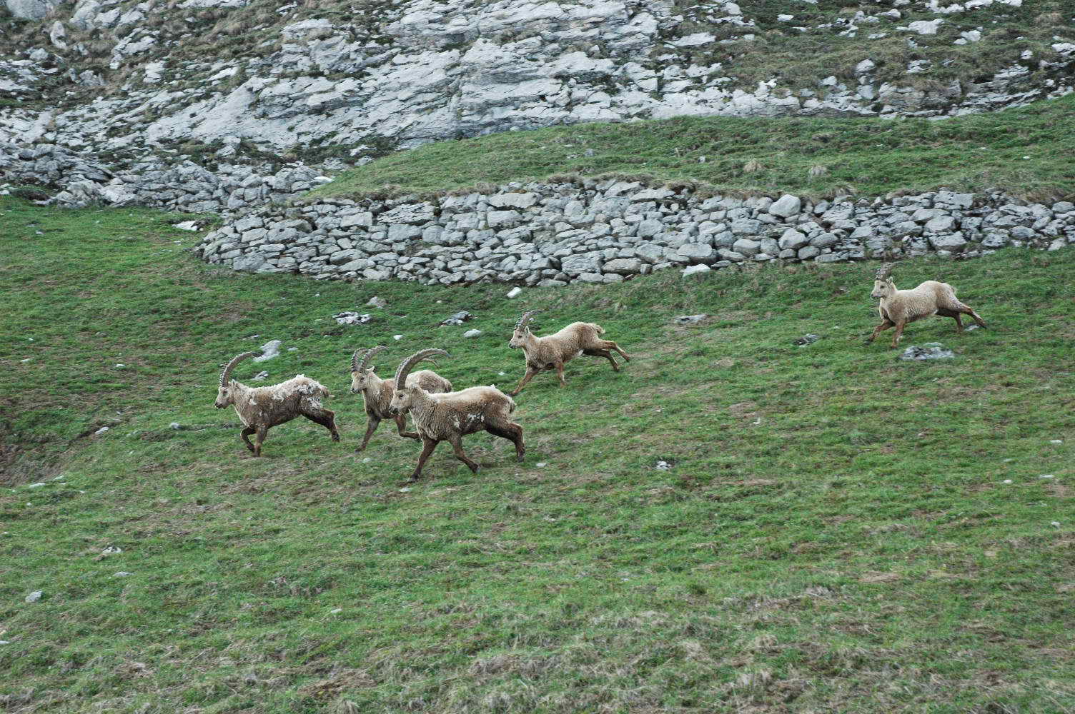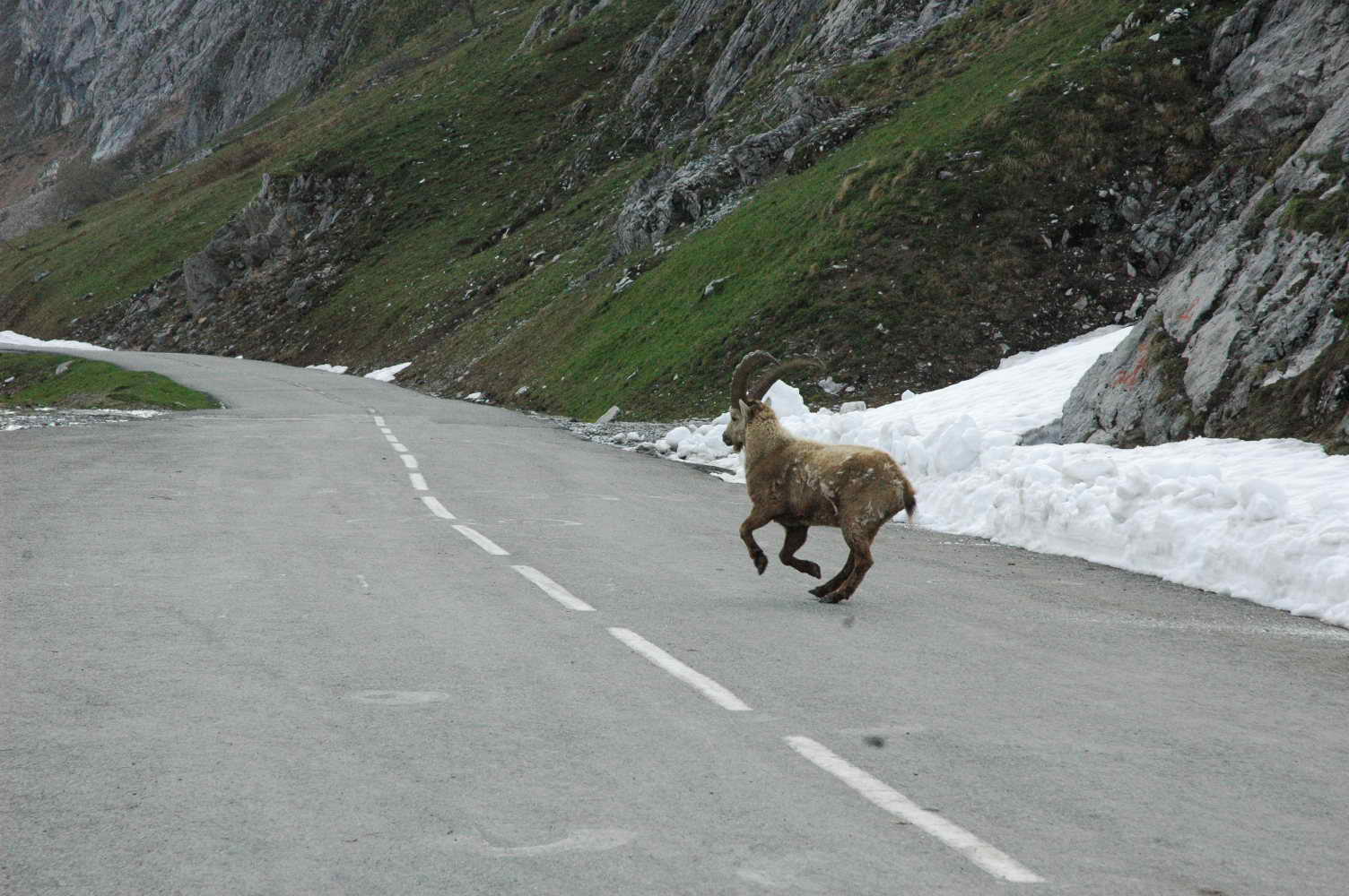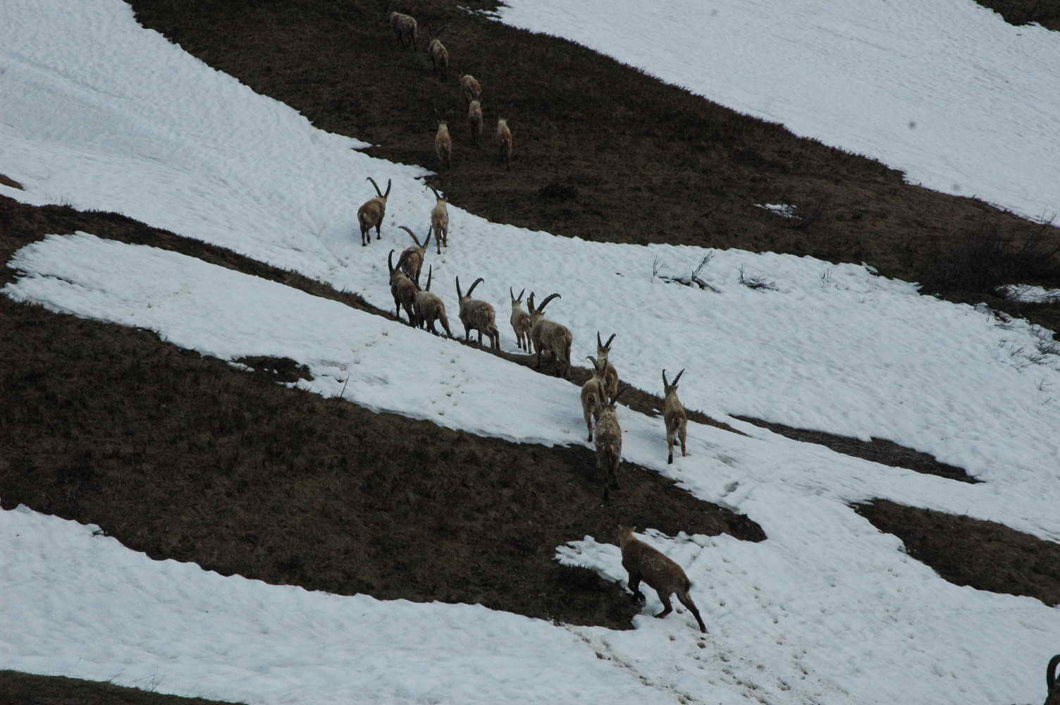 Et hop ! les voilà qui traversent, peureusement, élégamment ... rapidement pour paître sur l'autre versant !