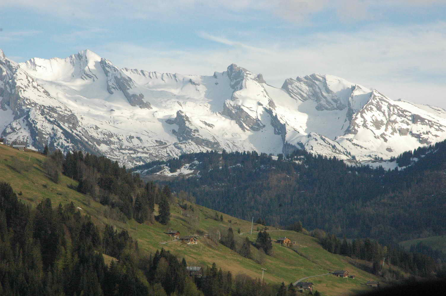 La grimpette valait bien la peine, entre deux murs de neige, une vue imprenable sur la vallée nous attend de l'autre côté,
