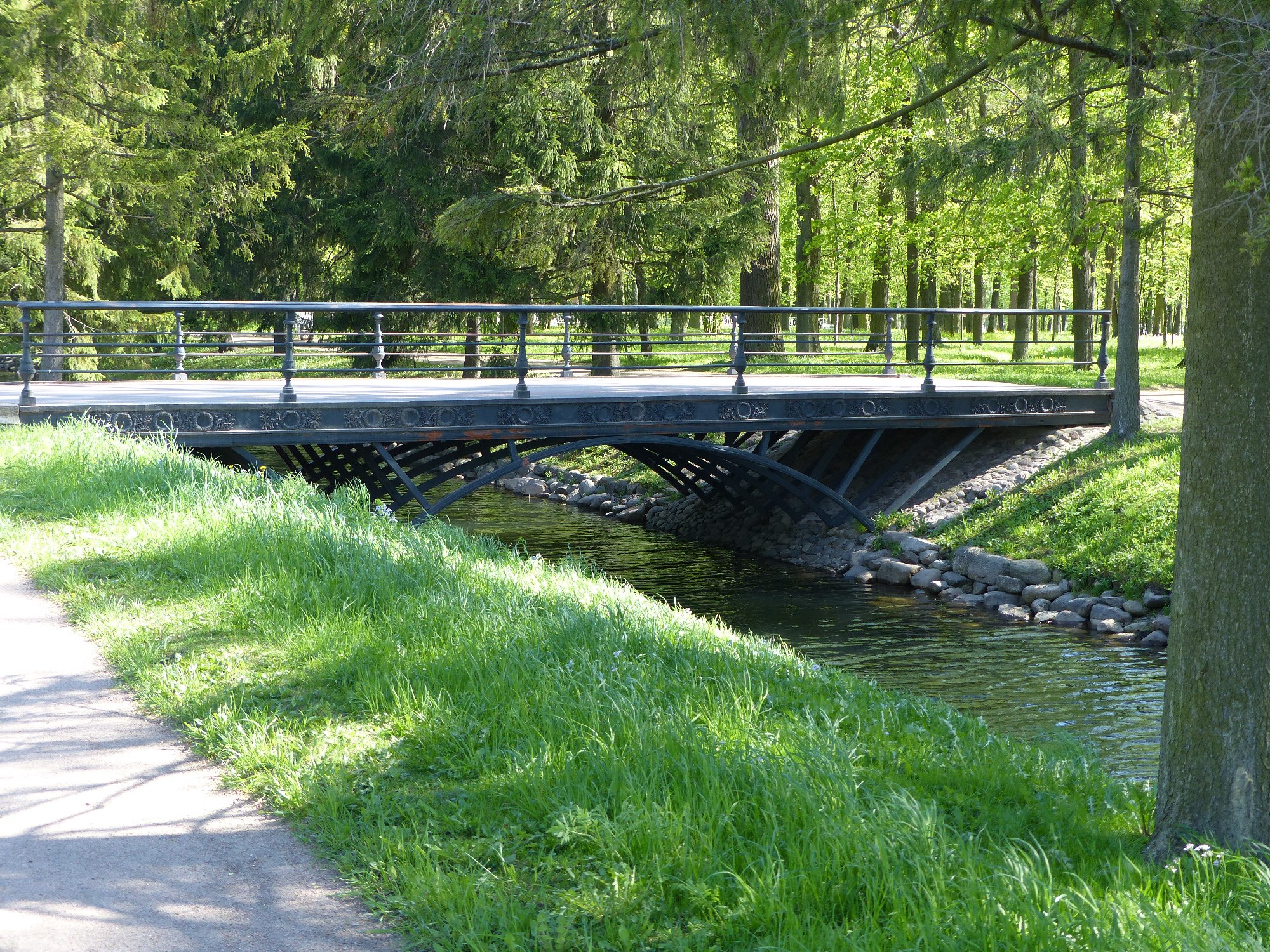 De très jolis jardins se dressent devant le palais Catherine, avec bassins, pavillons épars dans le parc, rivière et petits ponts .....
