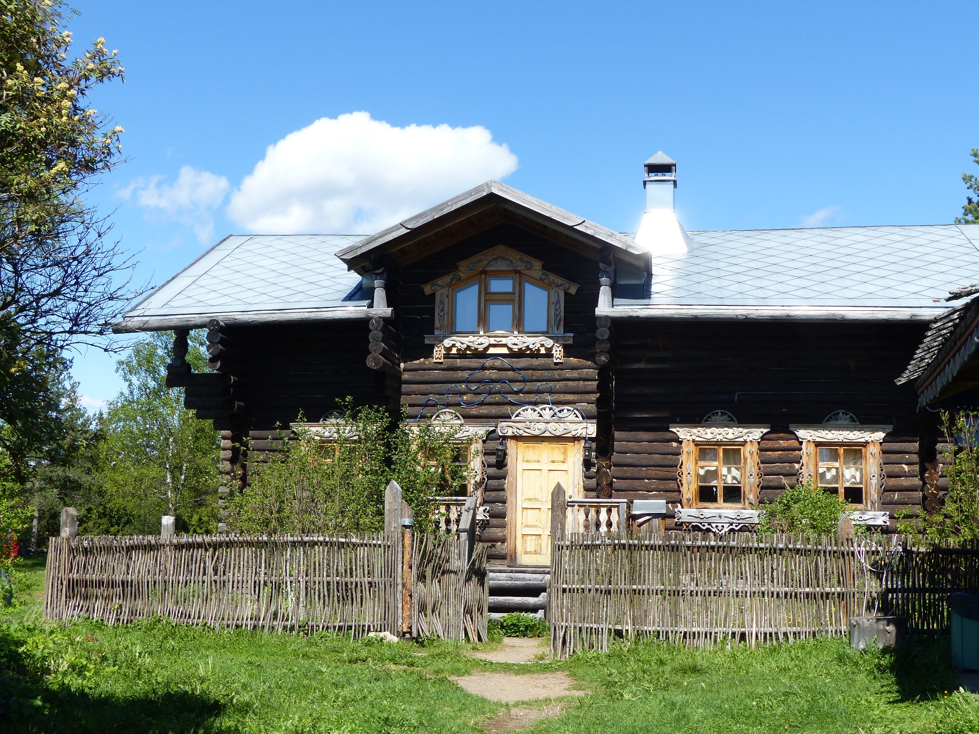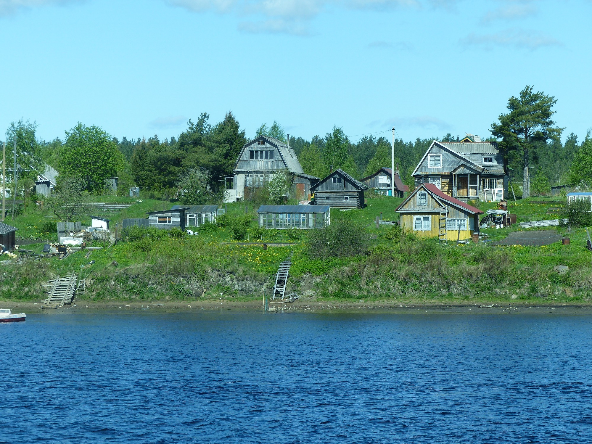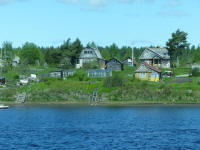 Nous avons navigué 296 km, par la Neva, le sud du lac Ladoga et la Svir, pour arriver dans la matinée à Mandrogui, village artisanal spécial touriste !!!! Mais bon ... de jolies maisons de bois reconstituées à l'ancienne me réconcilient avec l'endroit .... Il faut aussi reconnaitre que les artisans font du très très beau travail .... j'ai 5 hiboux splendides dans mon salon qui en témoignent. Une petite promenade loin des magasins et je découvre de jolies maisons et un lac