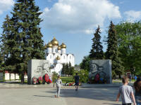 Le monument aux morts et la cathédrale de l'Asumption (toute neuve !)