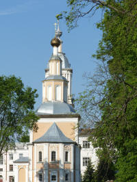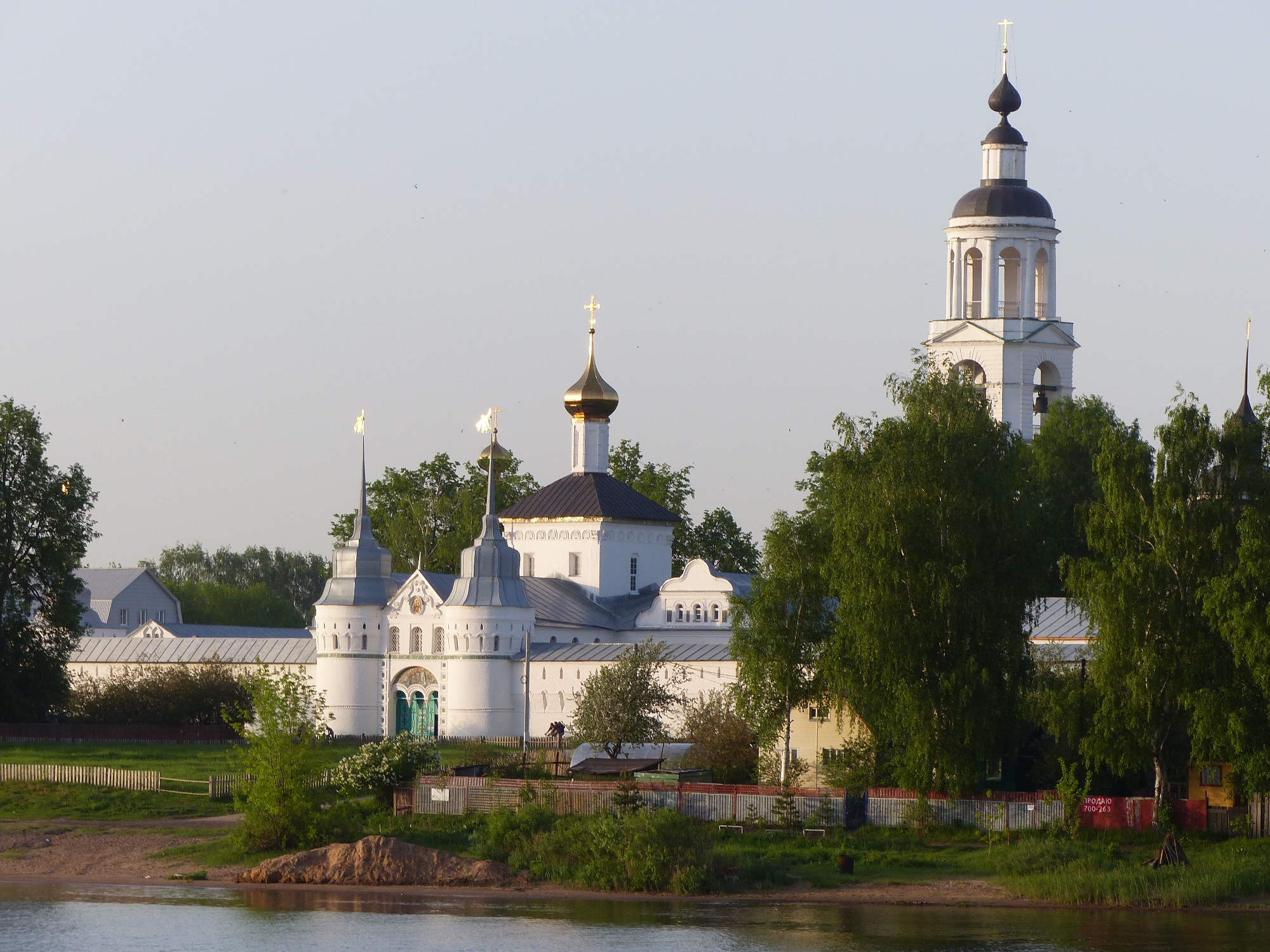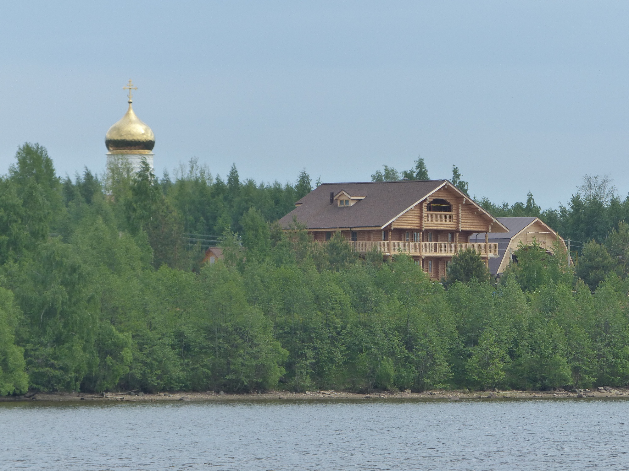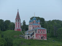 Nous reprenons la navigation avec ses maisons au bord de l'eau, ses clochers qui dépassent des arbres ça et là, de jolis bâtiments. Nous avons 209 km à faire sur la Volga.
