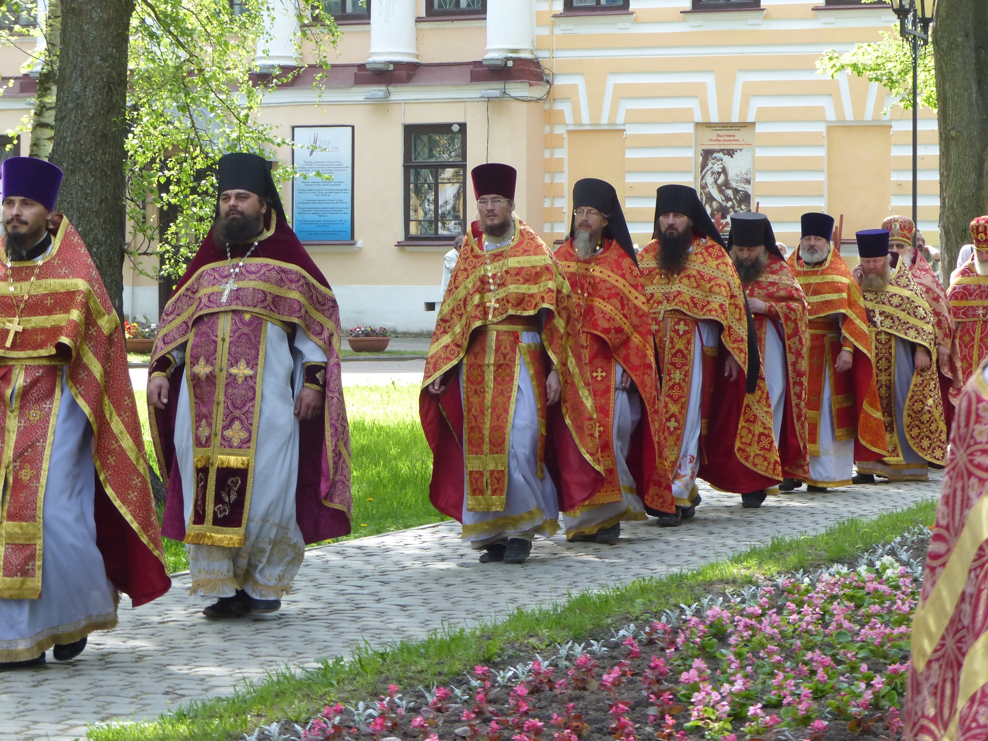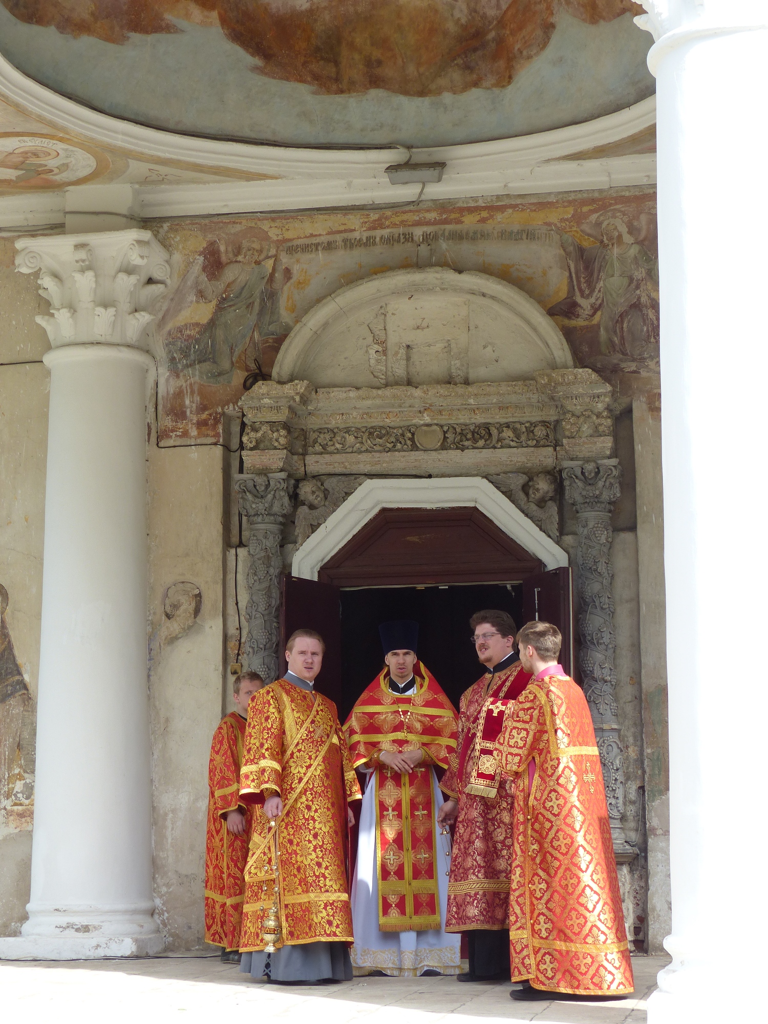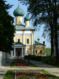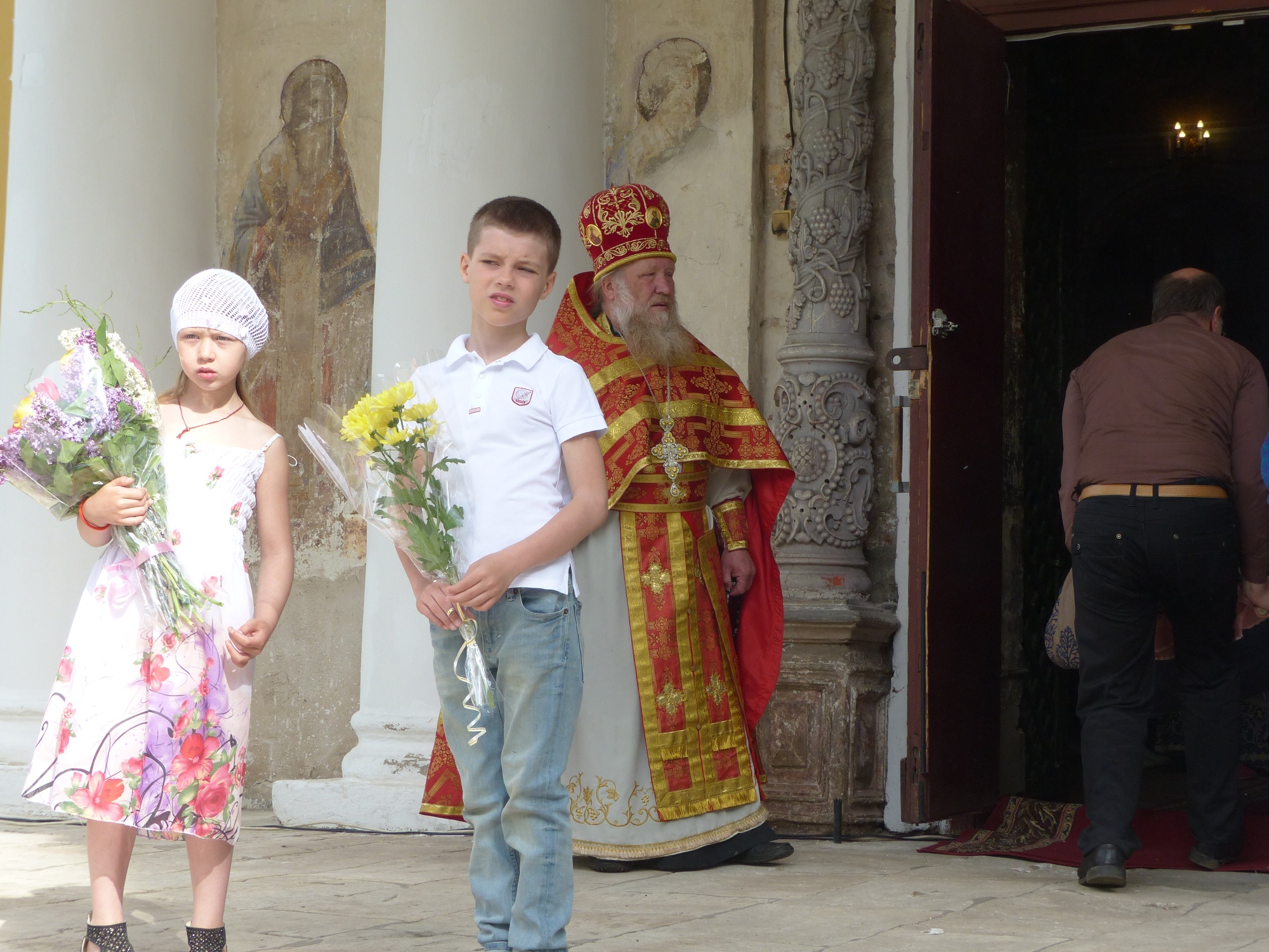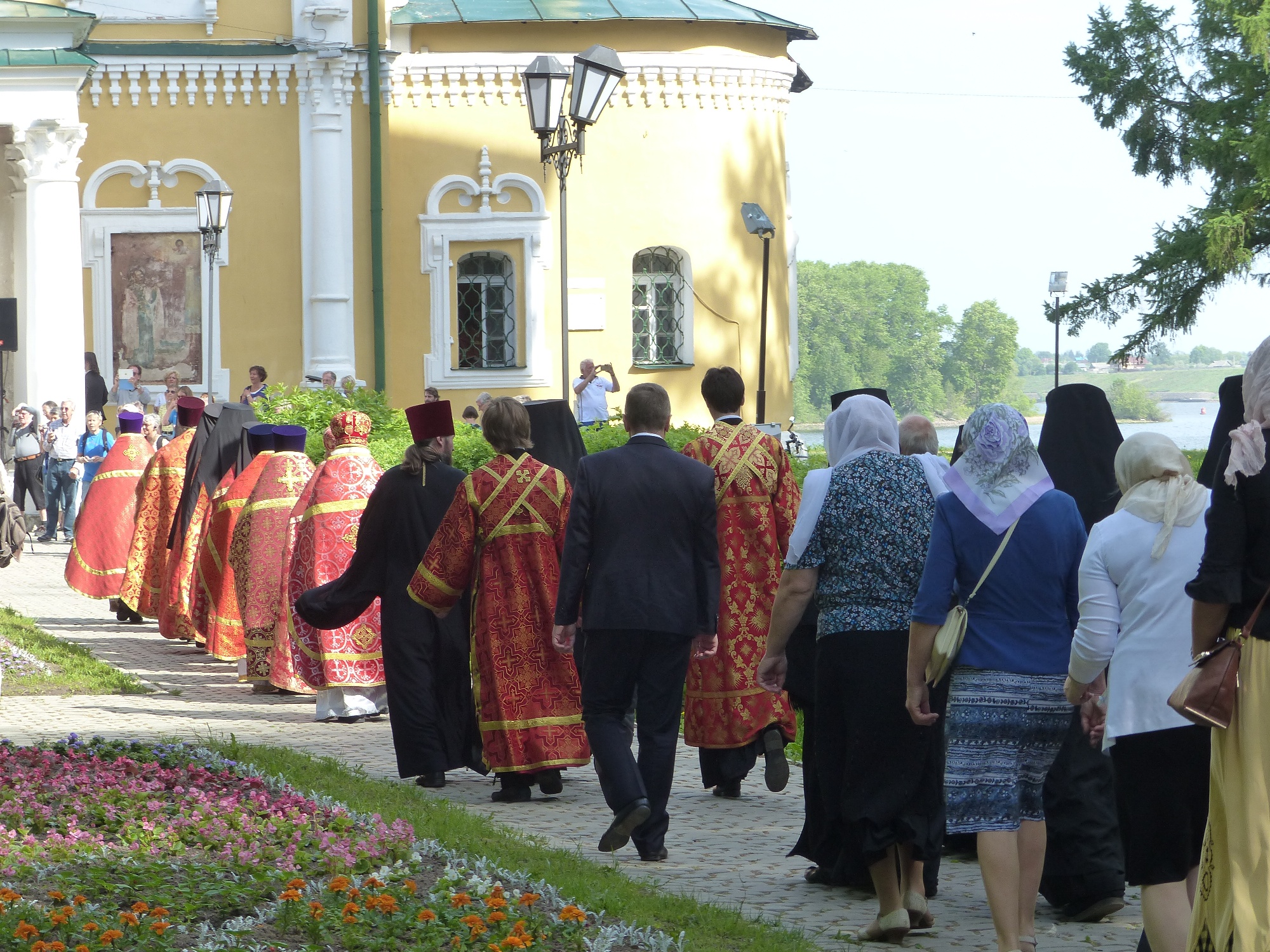 Nous voici a Ouglitch, petite ville sympathique ou nous allons assister à l'arrivée de hauts dignitaires de toute la région, pour une messe que nous ne verrons pas ..... mais il y a déjà du monde devant l'église qui attend .... puis ils arrivent en rang .... suivis d'une foule silencieuse.