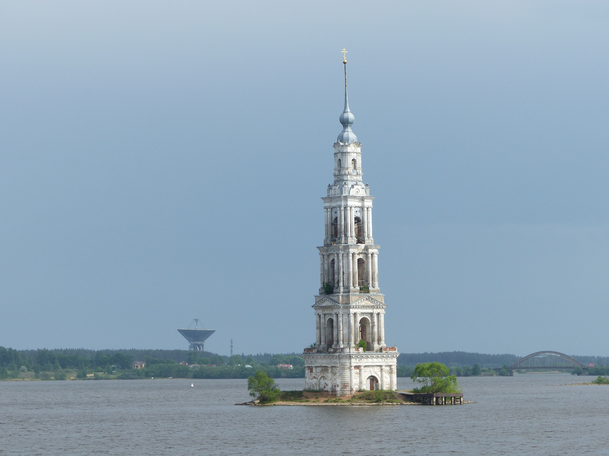 Et le balai des clochers reprend, mais dans le canal de Moscou apparait le clocher d'une église dont le village a été noyé .....