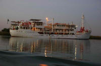 Retour à la nuit tombante ... le bateau illuminé nous attend pour la soirée .....