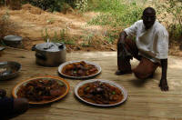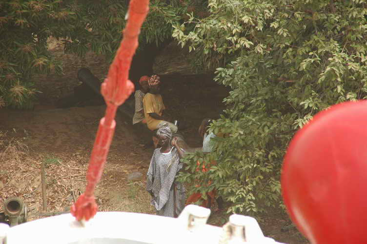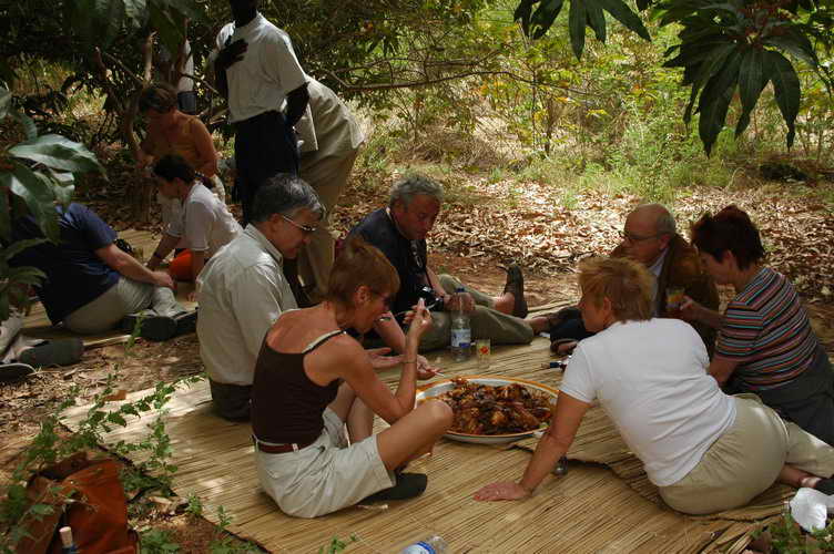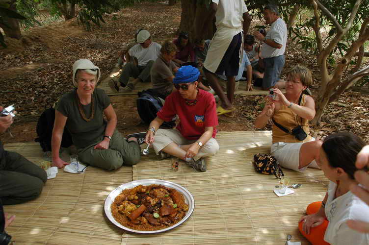 Arrêt pour le déjeuné où on nous a prévu un piquenique avec le plat traditionnel sénégalais et le bateau s'arrête réellement contre la terre ferme ....
