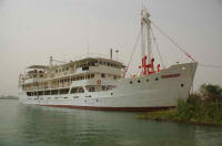 Son faible tirant d'eau nous permet cette vue tout à fait folle du bateau ......