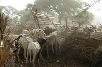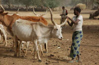 La traite des zébus, c'est une autre paire de manche ! Il faut carrément attacher le petit aux pattes de sa mère avant de pouvoir traire ...