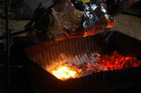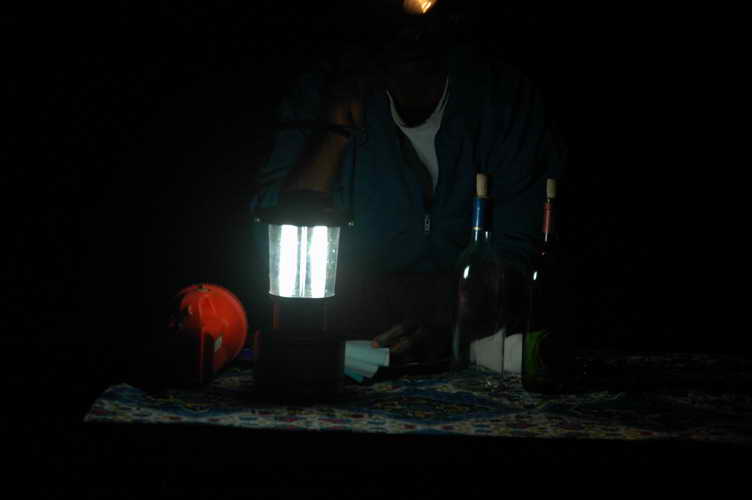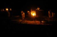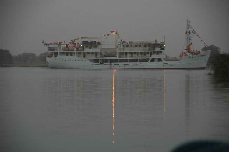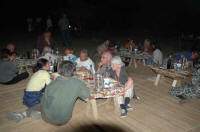 Et voilà notre surprise du soir ... un méchoui sur la berge ! Super !!! Nous sommes ravis !!! Le méchoui cuit à la broche depuis l'après midi, les tables dressées, nous nous croyons dans "Out of Africa", le bateau illuminé ....