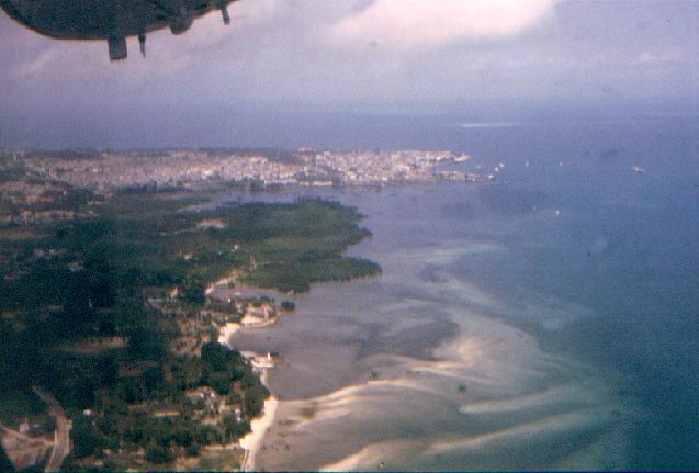 Nous nous envolons dans un tout petit avion Focker à hélices, vers Zanzibar ! l’ile aux épices ! Nous sommes 12 passagers ! Le survol de l’ile est plein de promesses !