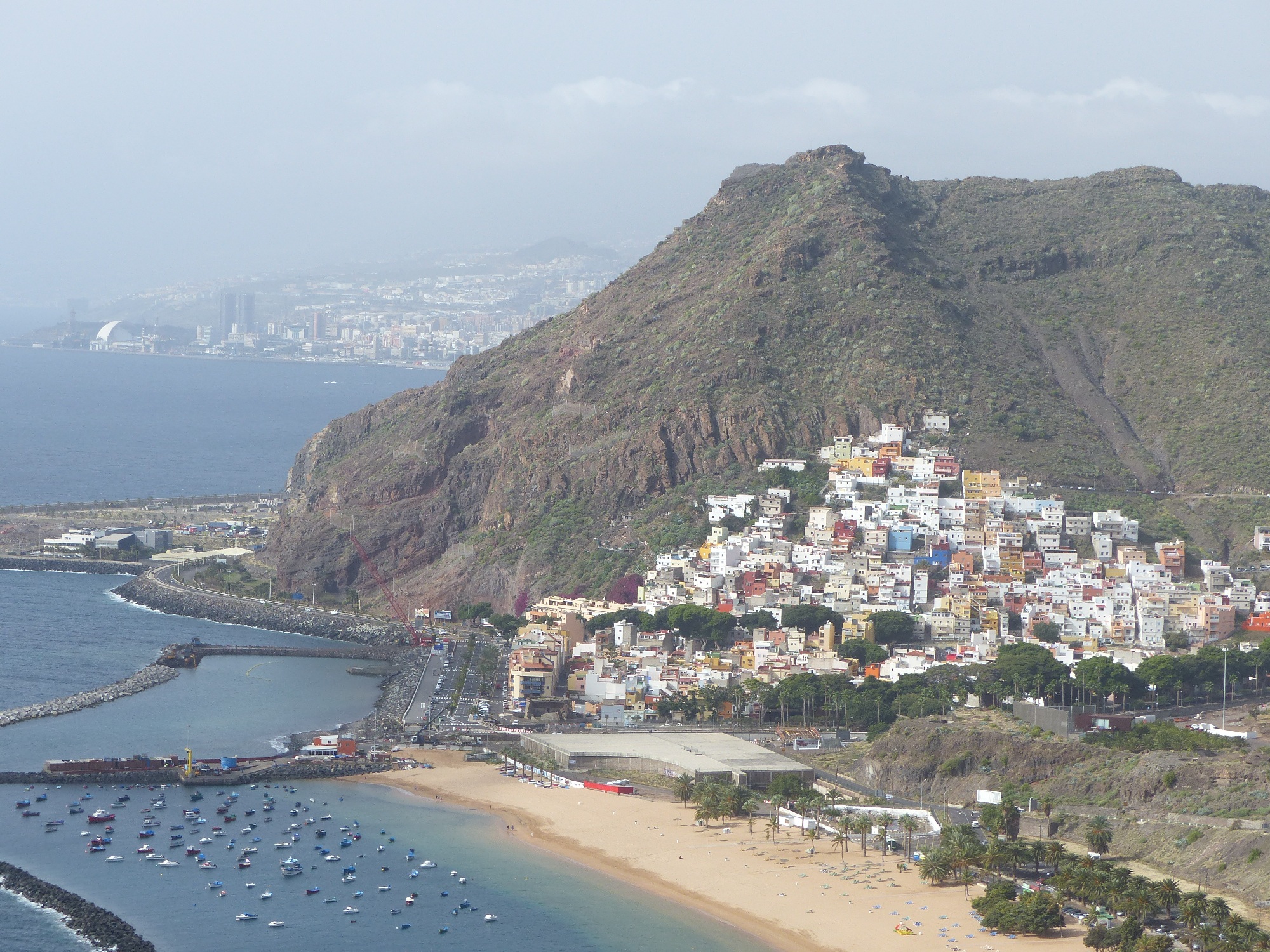 Quelques petites photos de Santa Cruz, la capitale et ses environs. Ici la fameuse plage de Santa Cruz, la playas de las Teresitas, photo à prendre depuis le belvédère ....