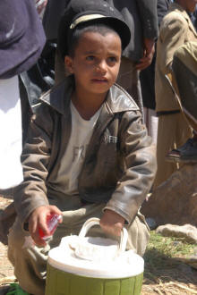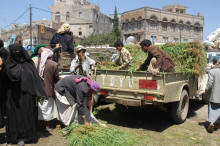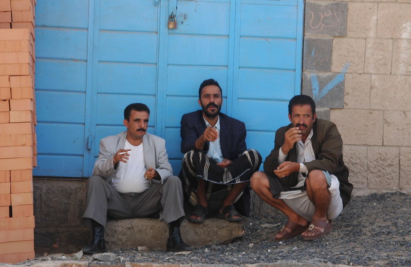 Sur la route, rassemblement d'hommes pour se procurer du quat ... c'est leur principale activité !