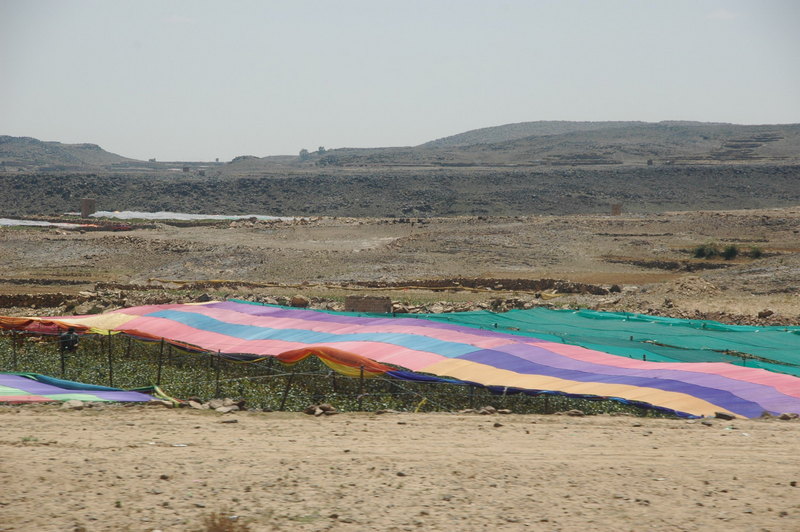 Nous reprenons la route et les postes de police se succèdent ... sisi c'est un abri pour les flics ... plus loin ... une protection colorée pour protéger le quat du soleil ....