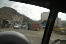 Nous visitons Taiz avant de partir pour la Mer Rouge ... la colline est éteinte et la ville nous apparait ...