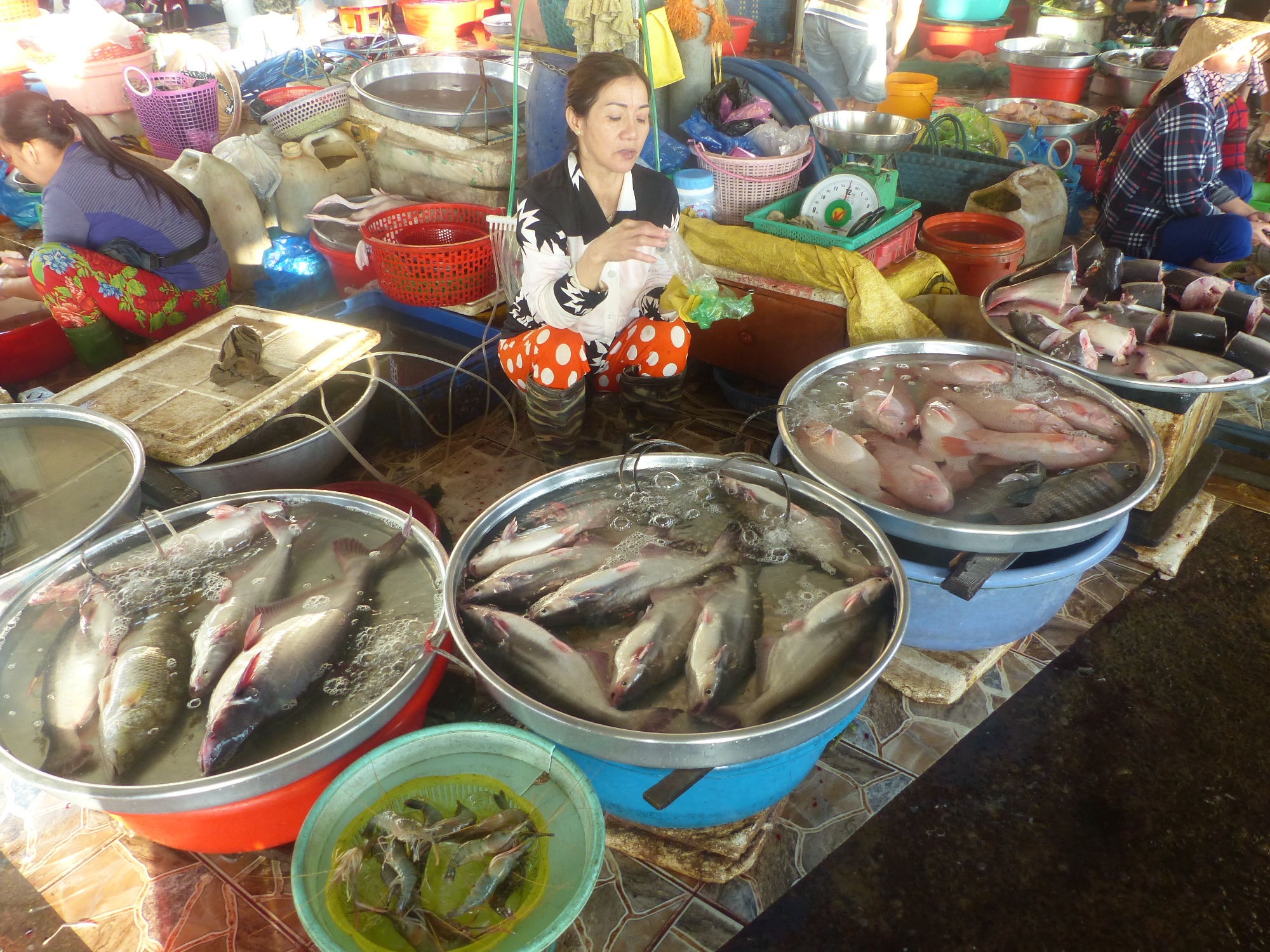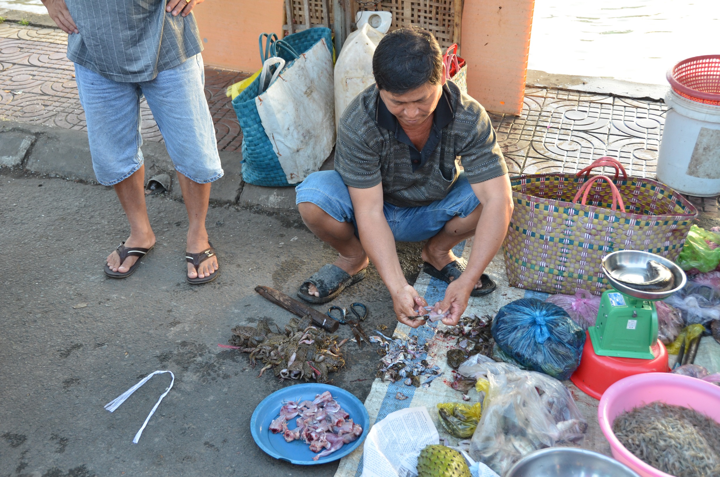 Le lendemain, promenade au marché ..... je vous le livre tel quel !!!!!! Bon appétit !!!!! Bien sur il y a des légumes ..... mais pas que ...... vous allez avoir des surprises .... grenouilles vivantes et chien démembré ...... au milieu de grands sourires ....