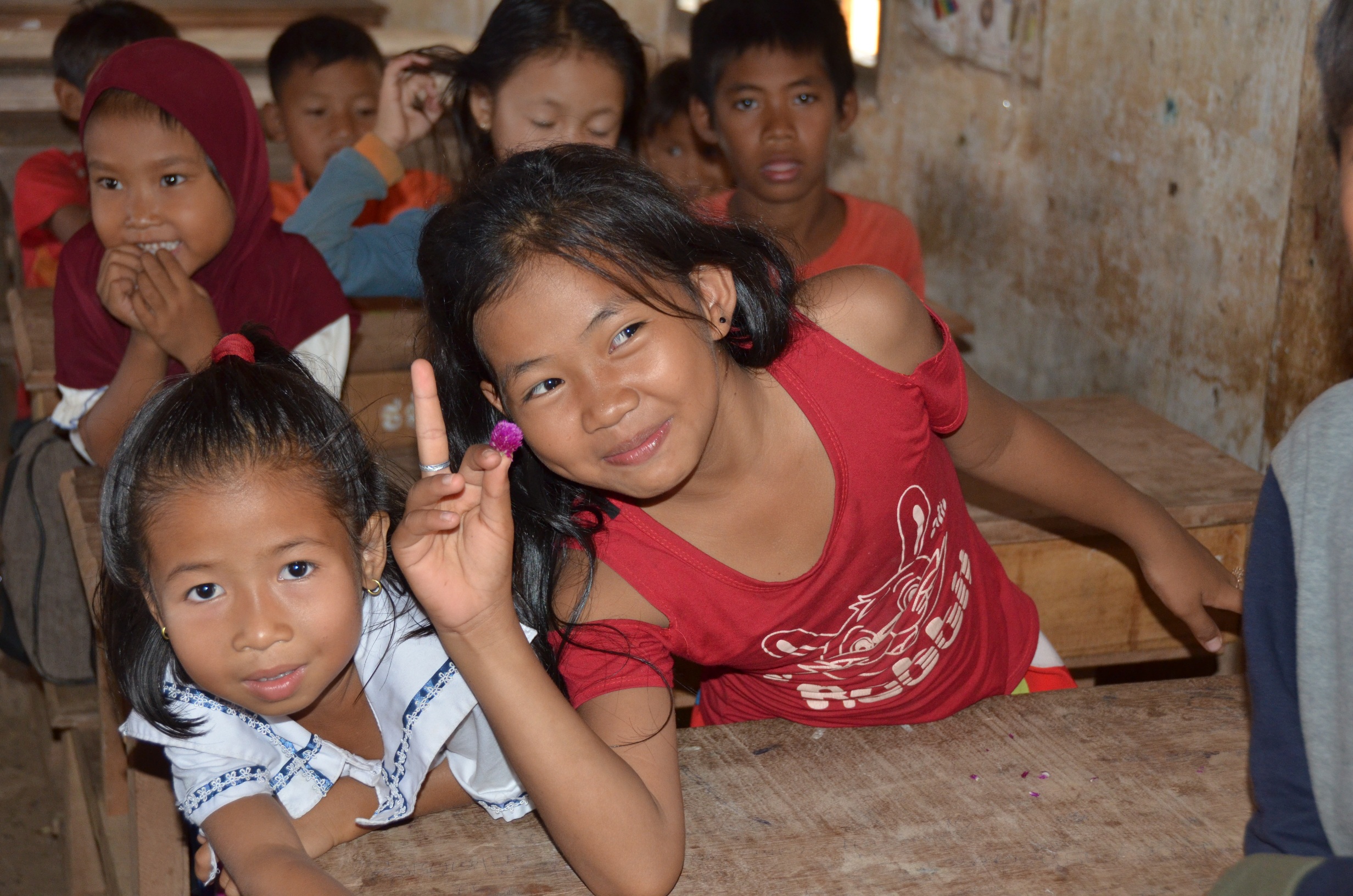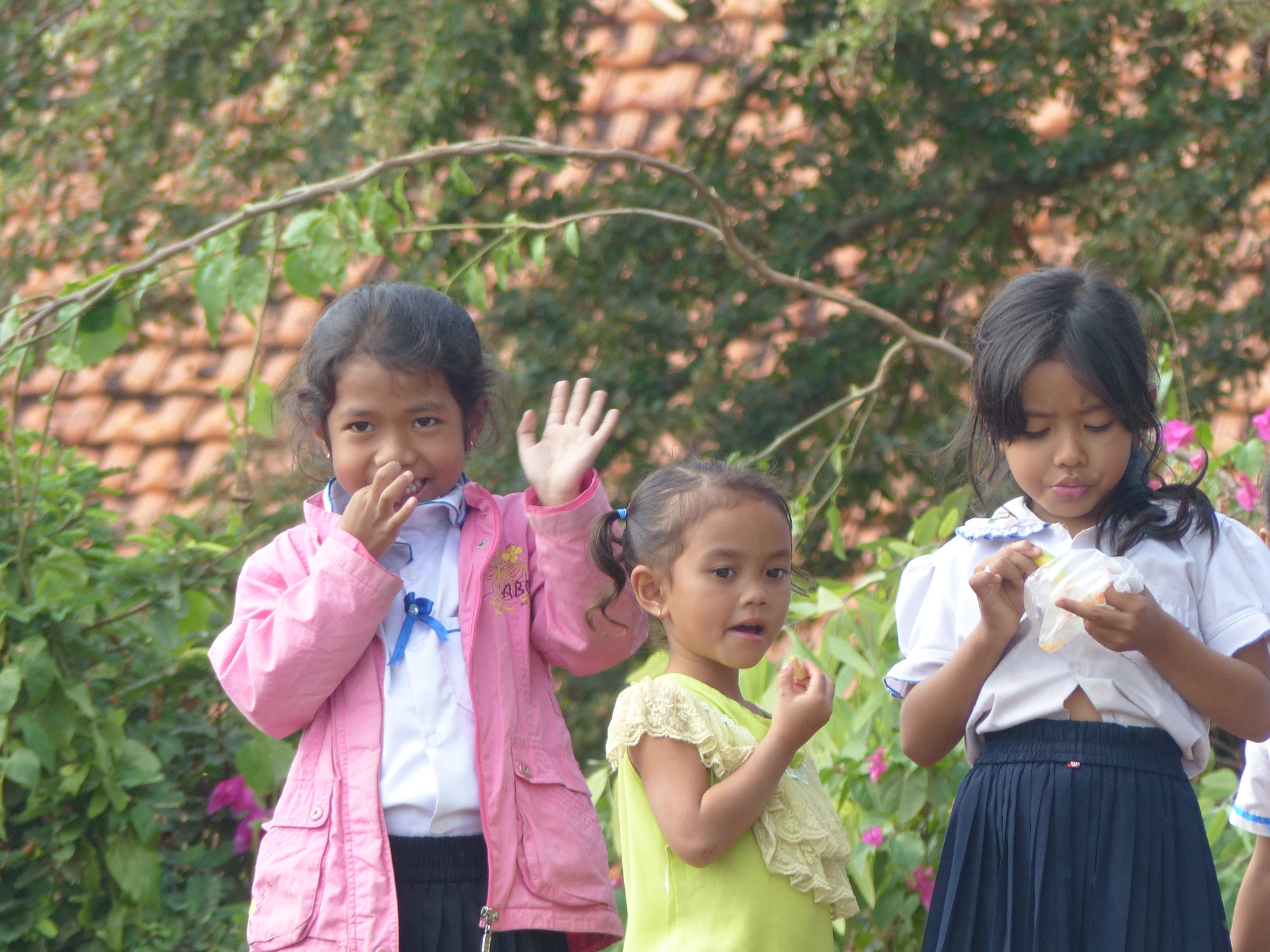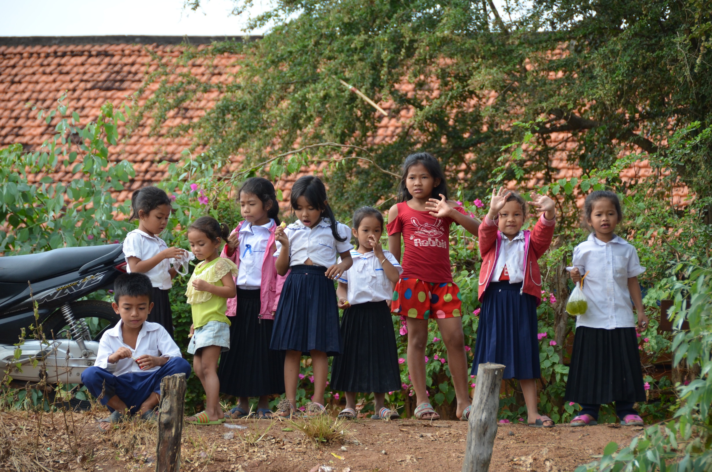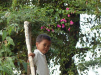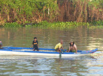 Des enfants nous attendent sur la berge .......