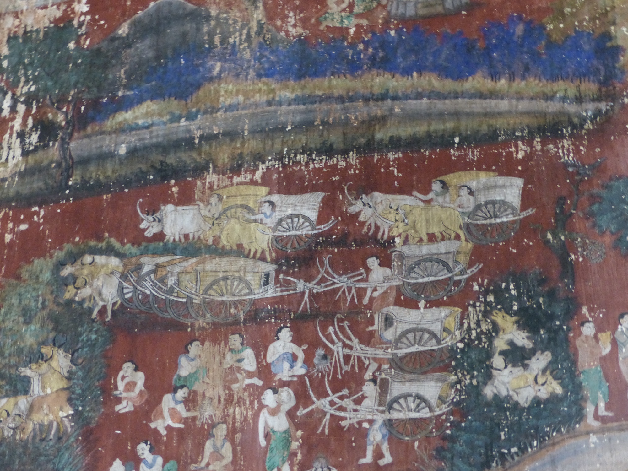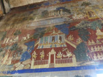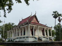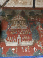 Puis nous allons visiter l’ancien Vihara de la pagode Wat Kampong Leu Cette pagode, isolée en plein milieu des rizières, dégage un charme authentique. Elle est l’un des derniers vestiges culturels de la région, où les murs arborent encore de belles fresques, mais qui demanderaient à être davantage entretenues par les autorités locales.