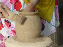 Visite d'une briquèterie et poterie ... Madame tourne autour du tour qui ne bouge pas ... vous me suivez ???? elle fait combien de km par jour ????