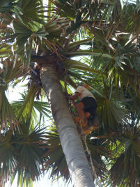 Nous continuons notre visite par l'exploitation de palmier à sucre et sur le chemin, une termitière