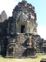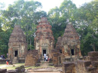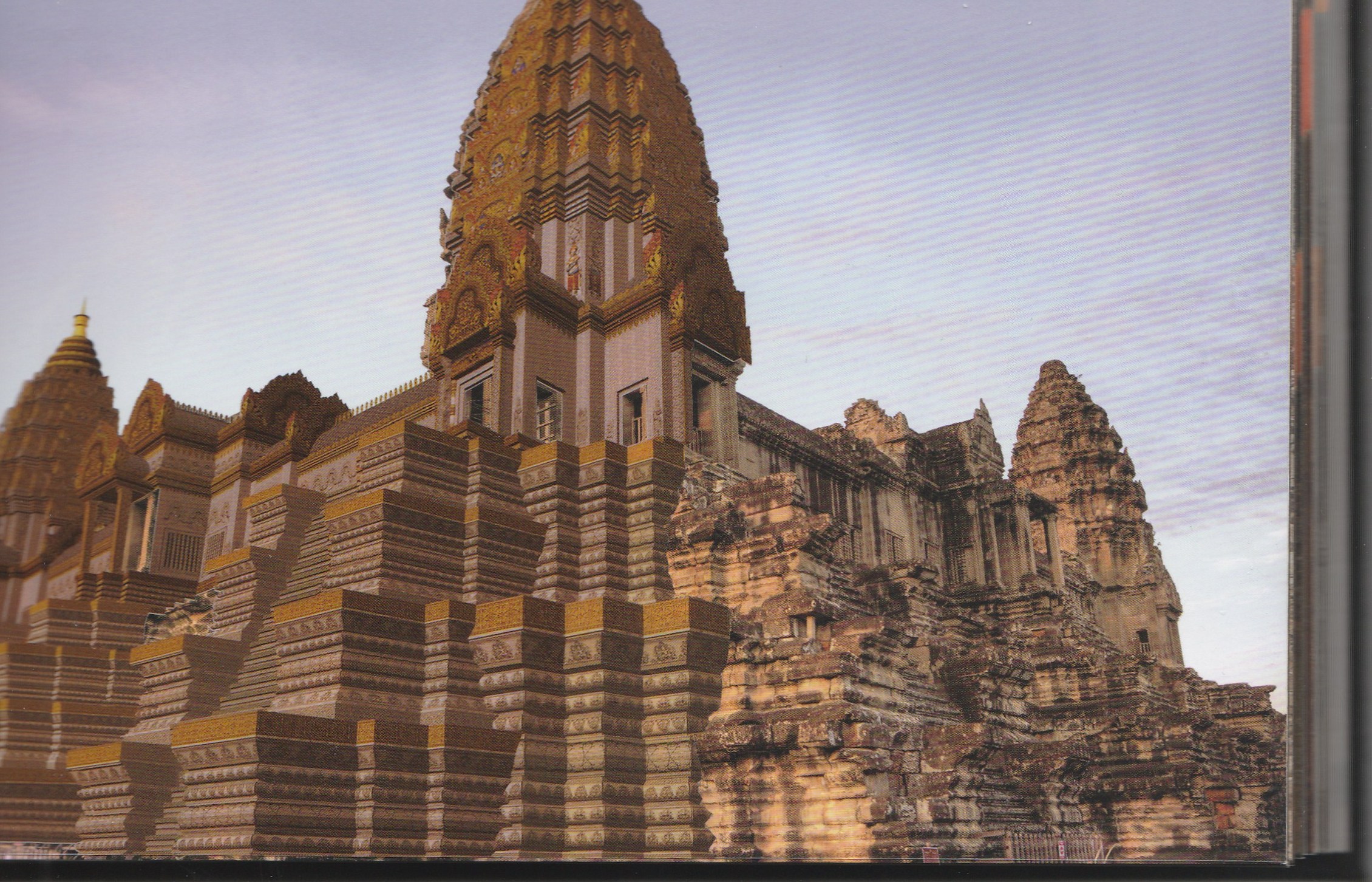 Je ne vais pas vous énumérer les temples visités ... ces nom fastidieux sont très compliqués, à part le plus grand, Angkor Wat ..... Je vais plutôt essayer, à l'aide d'un livre que nous avons acheté de vous montrer ces temples aujourd'hui mais aussi à l'heure de leur luxuriance. Il y aura donc des photos que nous avons prises et celle du livre qui nous montre le même temple à l'époque.