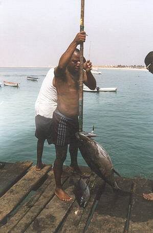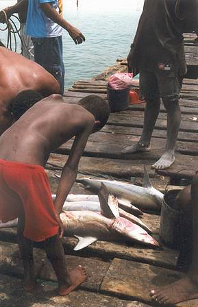 Il est 10h du matin ... les premiers pêcheurs arrivent et on hisse le poisson sur le ponton ! On se presse pour voir la pêche ... les enfants regardent et attendent leur tour !