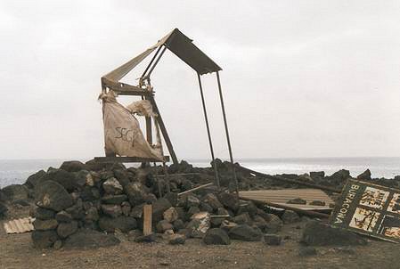 Un ponton solide mais plein de trous entre les planches .... et au bout la hampe qui permet de hisser les poissons ramenés par la pêche au gros ...