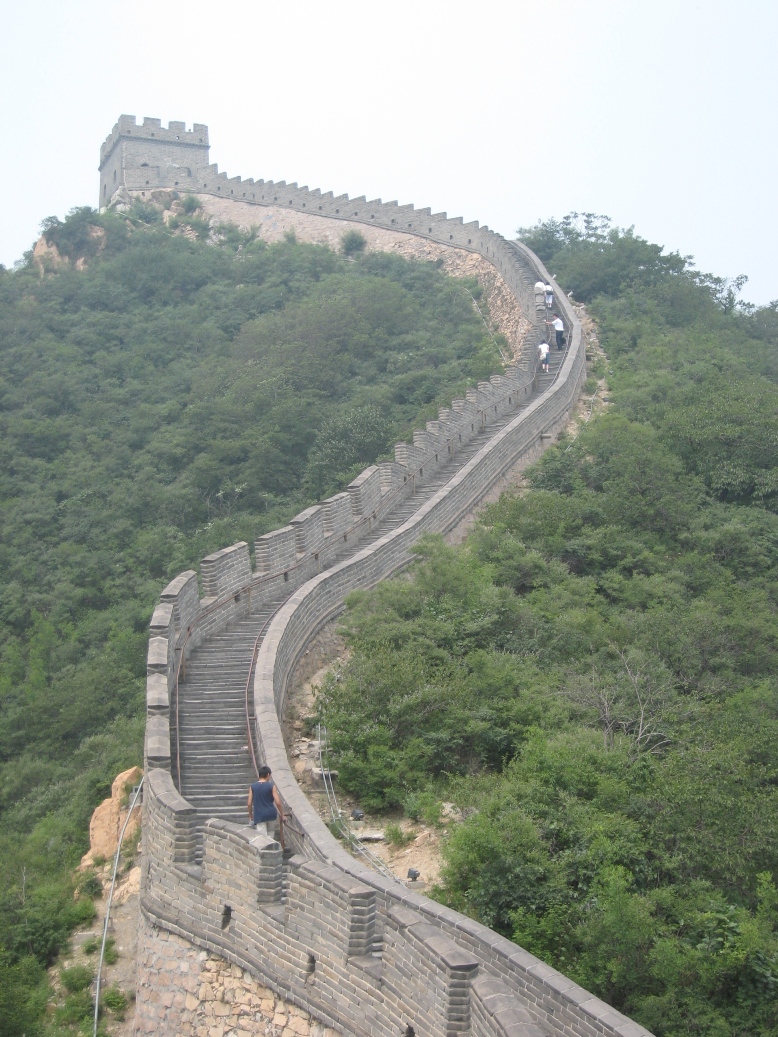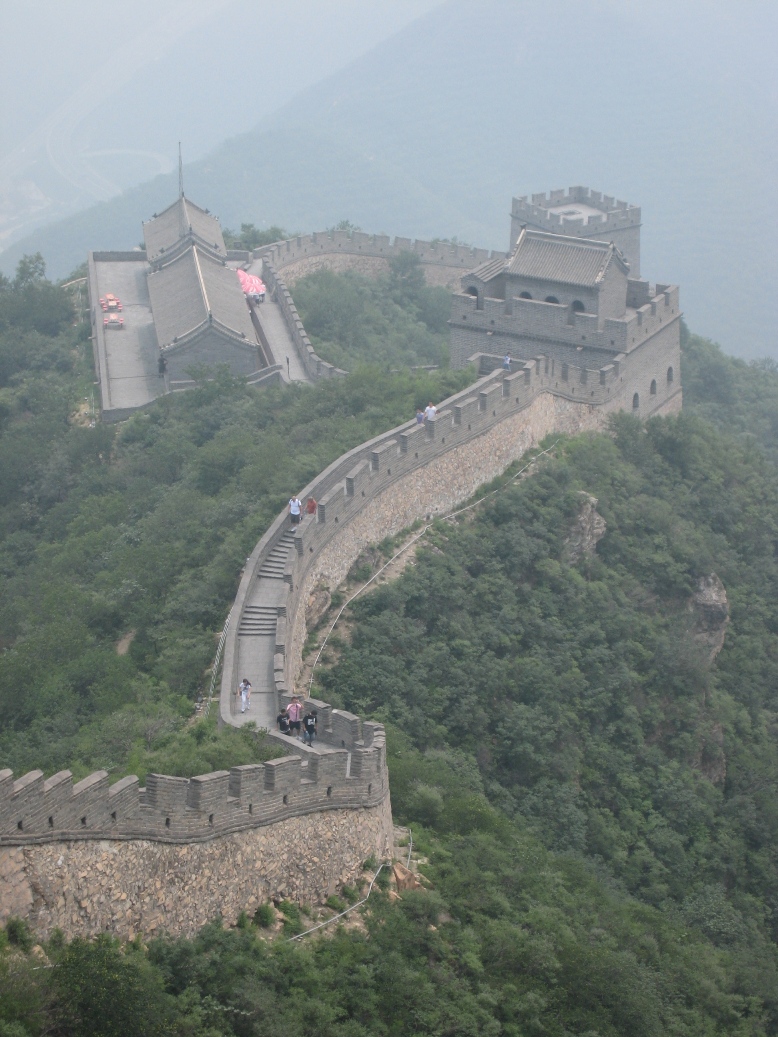 Le lendemain, nous allons voir la grande muraille ! Dans la purée de poids !!!!! On distingue la muraille au loin et c'est franchement très très impressionnant cette muraille qui chemine à travers tout !!!