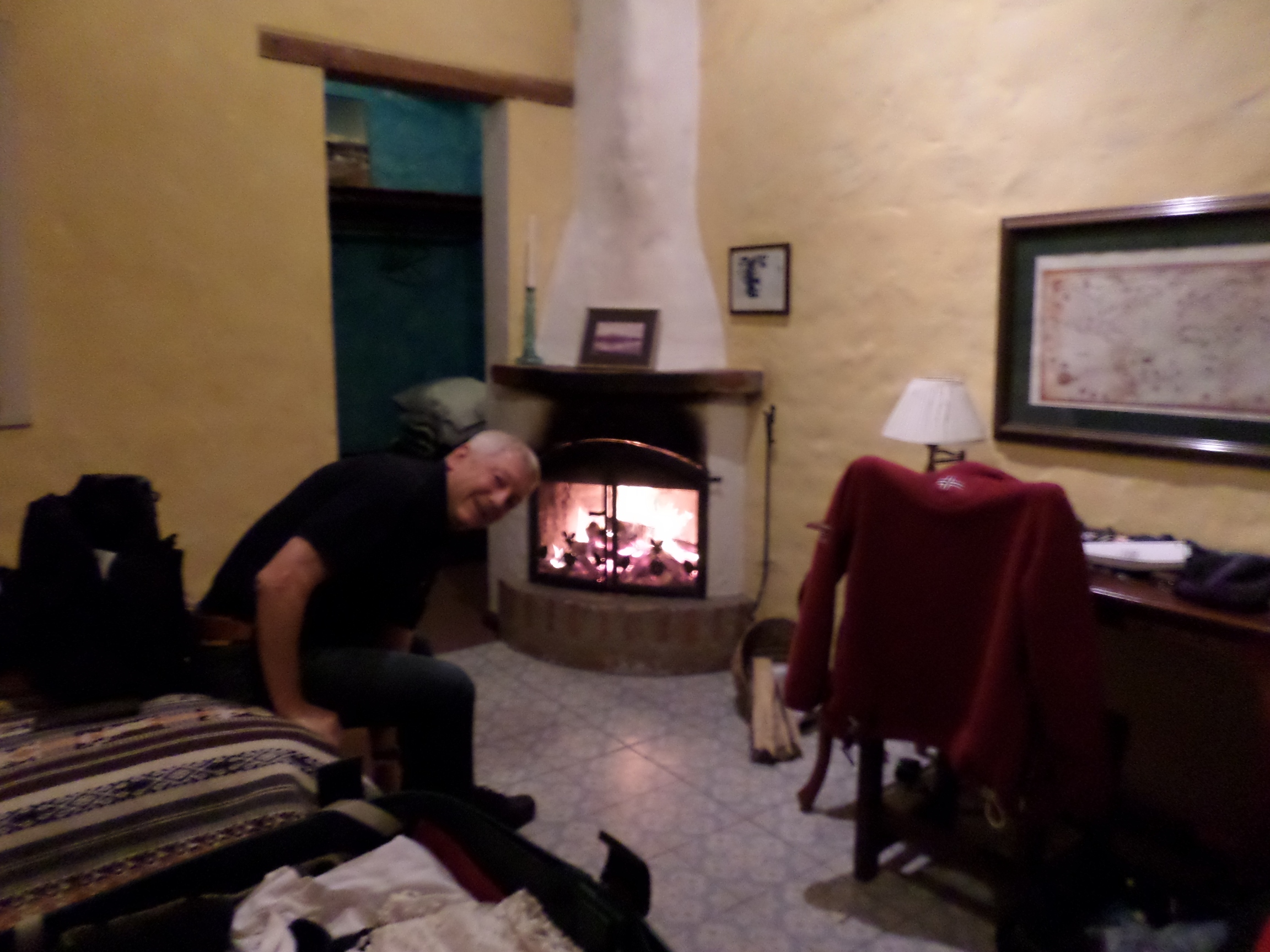Nous arrivons à une très belle Hosteria où nous attend un bon feu de bois dans la chambre ... ils n'oublieront d'ailleurs pas non plus la bouillotte dans le lit ! Un délice !!!!!!