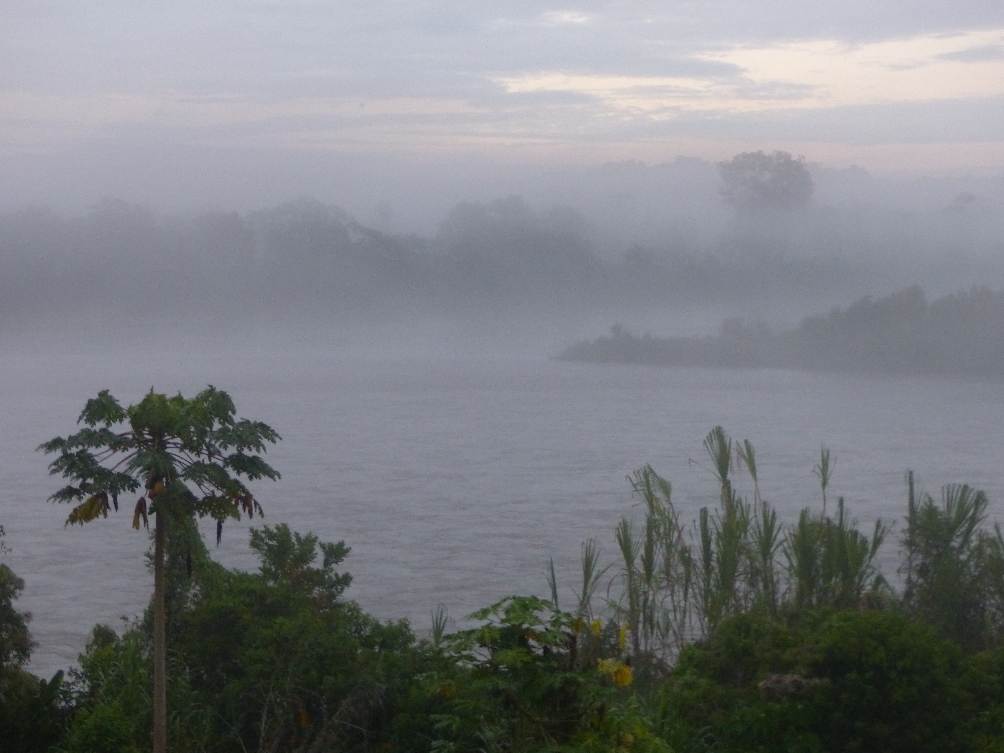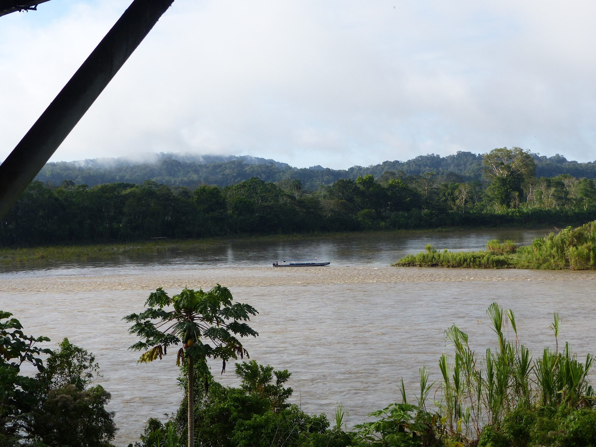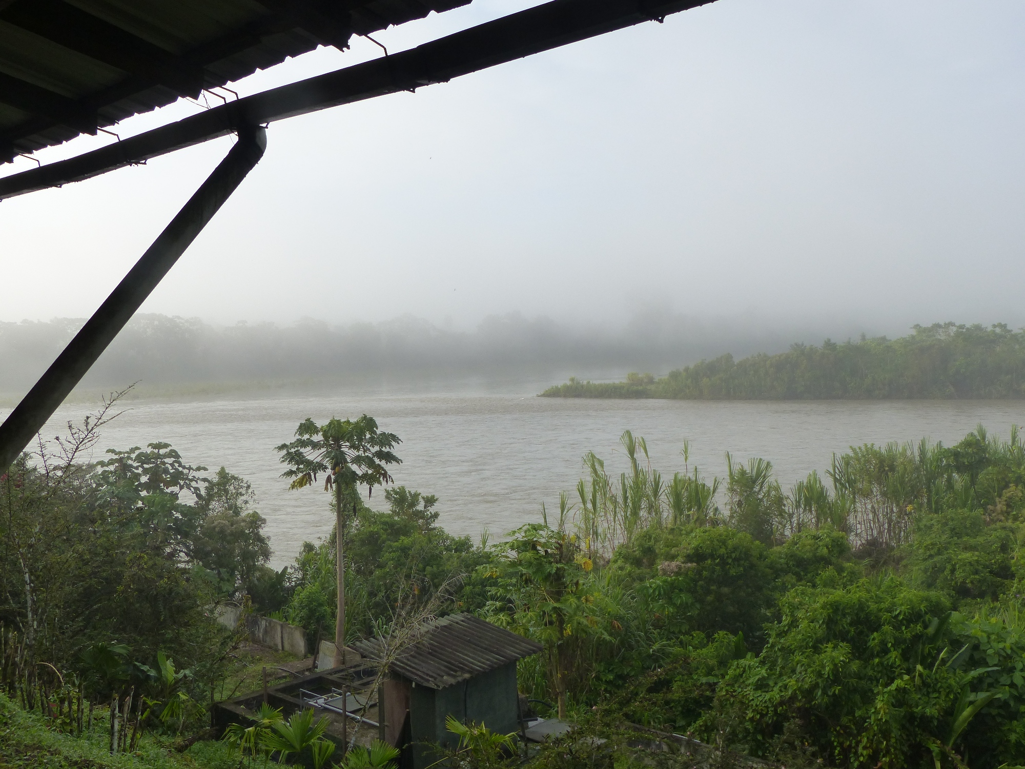 Après une longue route, embarquement dans une pirogue, et découverte du fleuve Napa. Nous arrivons au lodge !!! Superbe, en bord du fleuve !!!! Un peu sur les hauteurs !!!! Ce rêve d'Amazonie devient enfin réalité ! De la verdure partout, des plantes, des arbres, des oiseaux, de la brume, du vent .... et les pirogues qui passent sur l'eau à longueur de journée .... l'ambiance y est !!!!!!