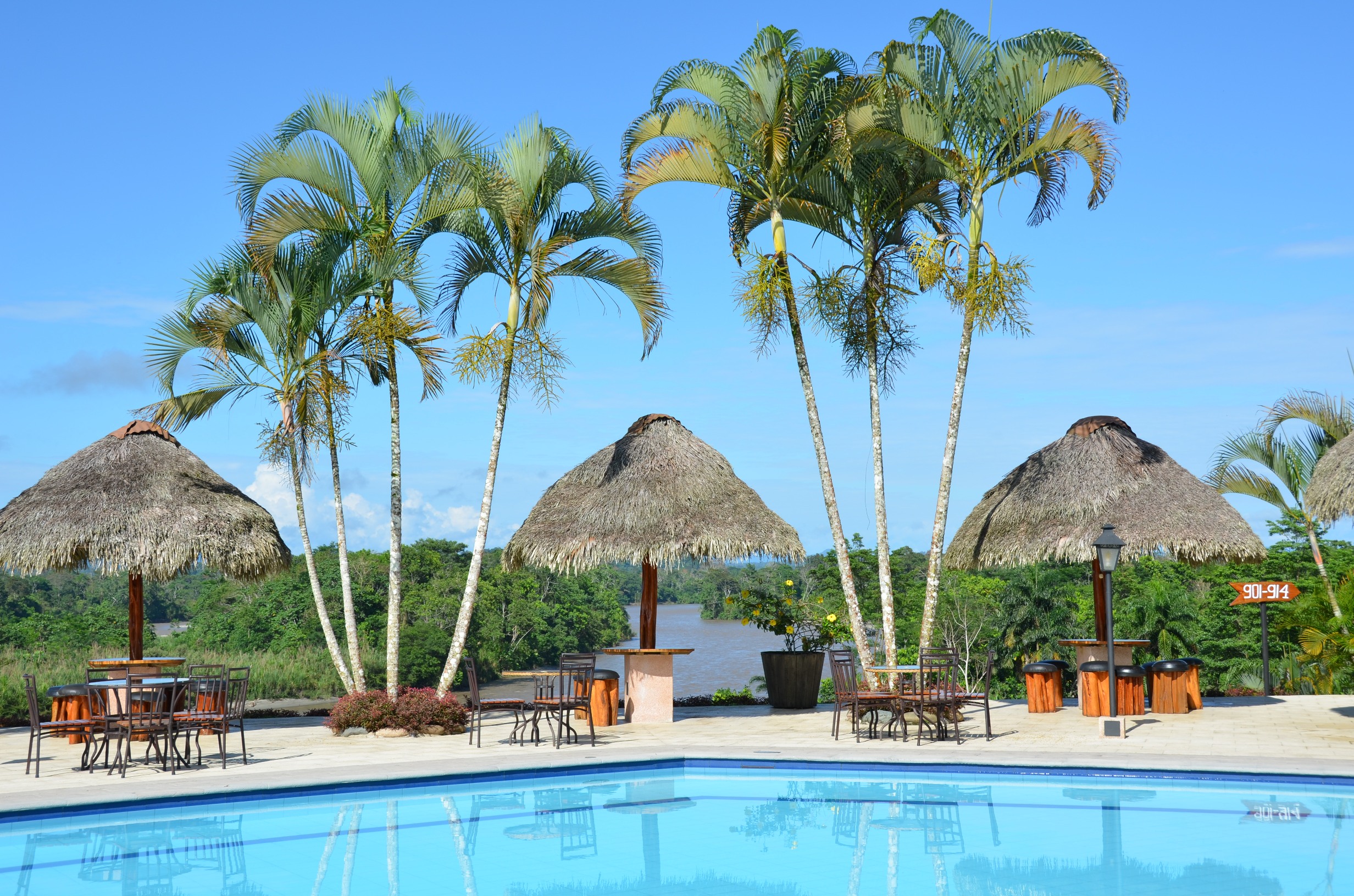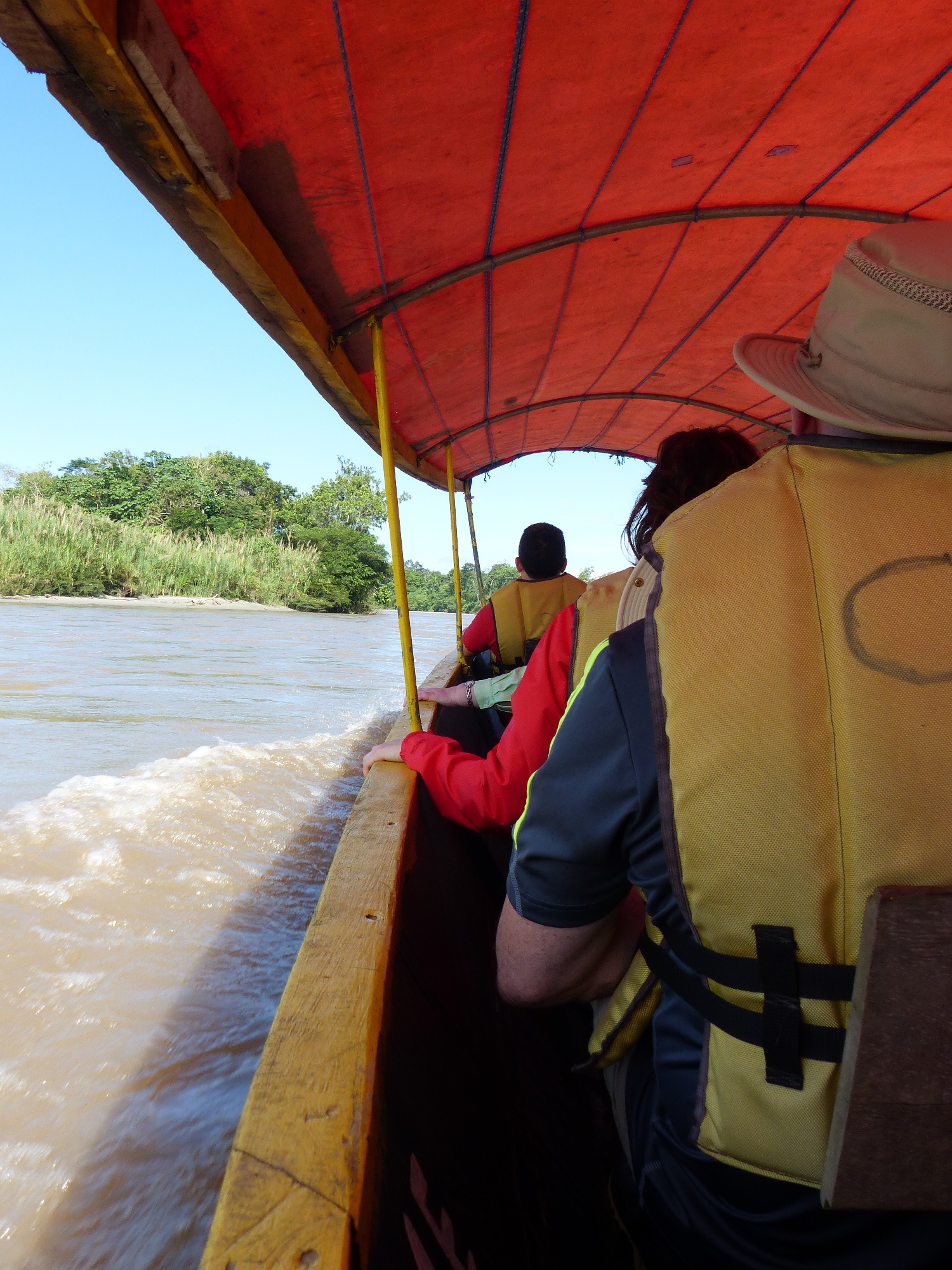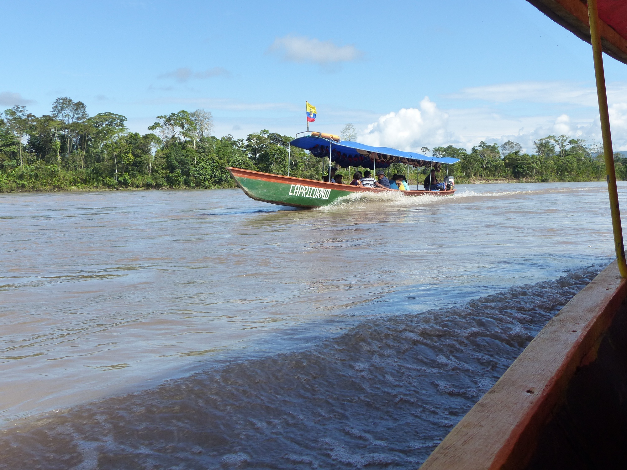 Après une longue route, embarquement dans une pirogue, et découverte du fleuve Napa. Nous arrivons au lodge !!! Superbe, en bord du fleuve !!!! Un peu sur les hauteurs !!!! Ce rêve d'Amazonie devient enfin réalité ! De la verdure partout, des plantes, des arbres, des oiseaux, de la brume, du vent .... et les pirogues qui passent sur l'eau à longueur de journée .... l'ambiance y est !!!!!!
