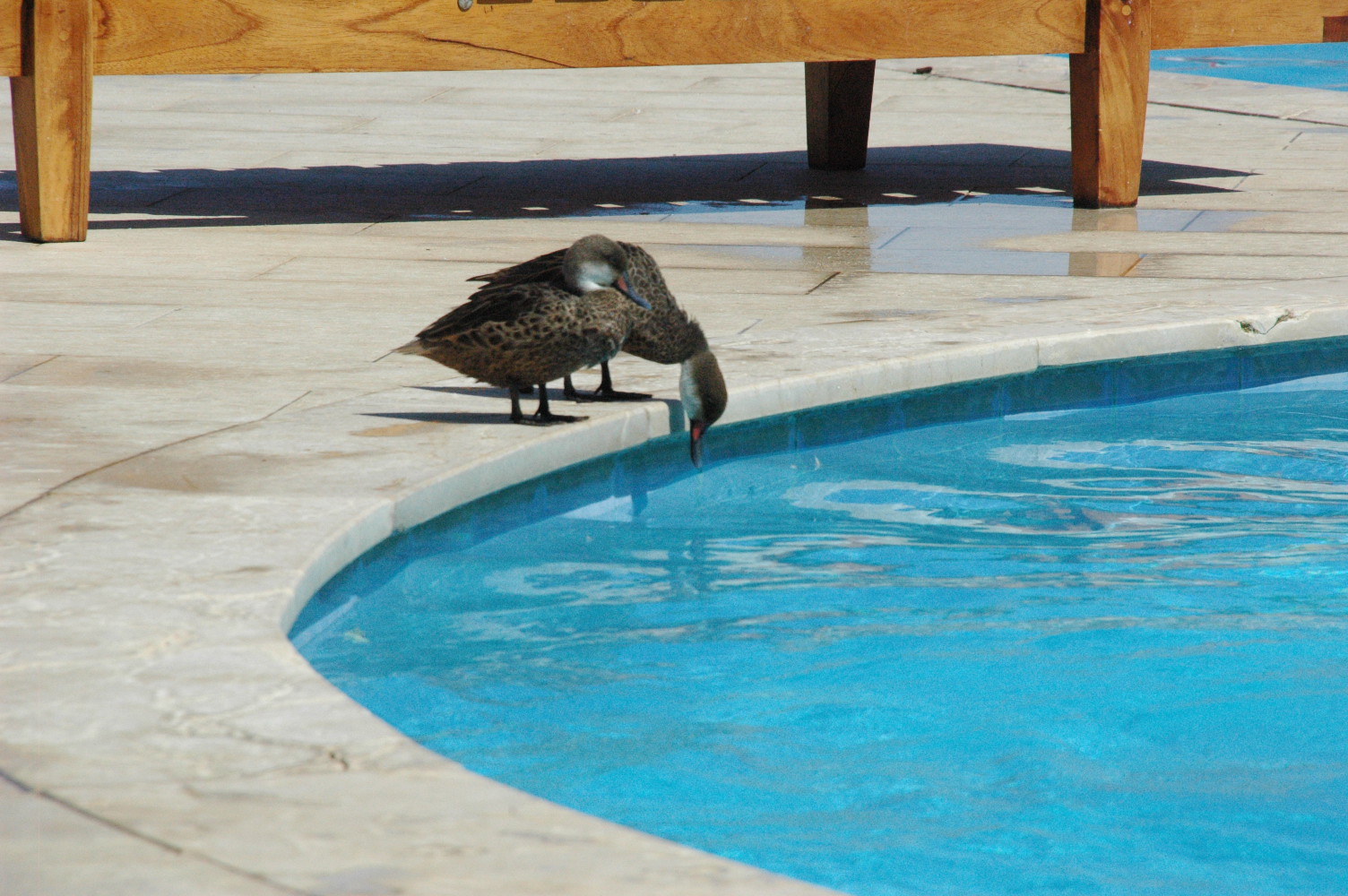 Nous déjeunons à l'hôtel vu précédemment ... au bord de la piscine, avec de petits voleurs !