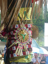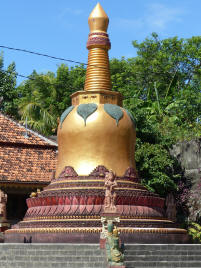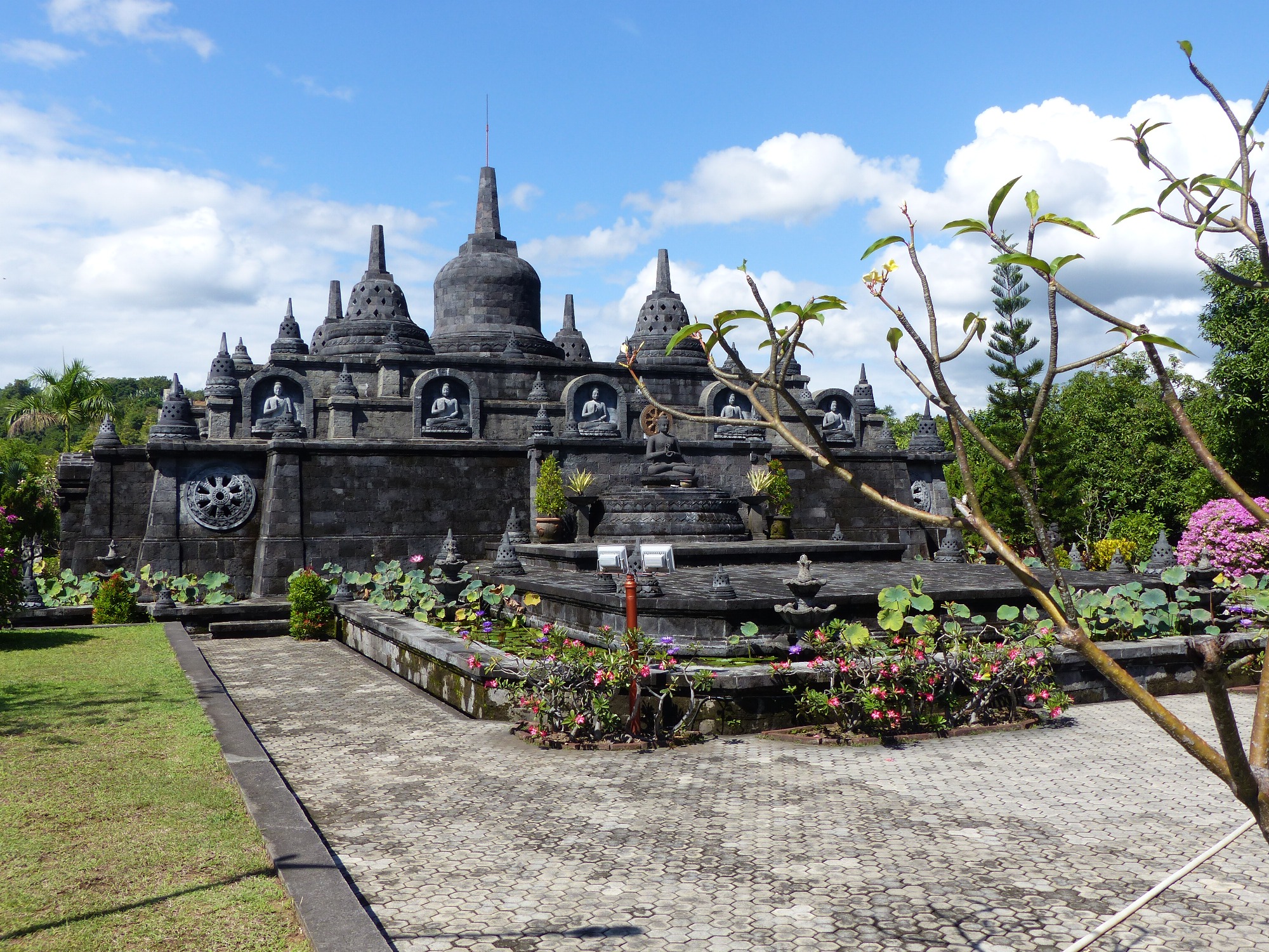 Voici ici le temple de Banjar, seul monastère bouddhique de Bali. Il est tout neuf ... et ... un peu bizarre je trouve ... quoique les stupas (colonnade à toit de chaume) sont superbes