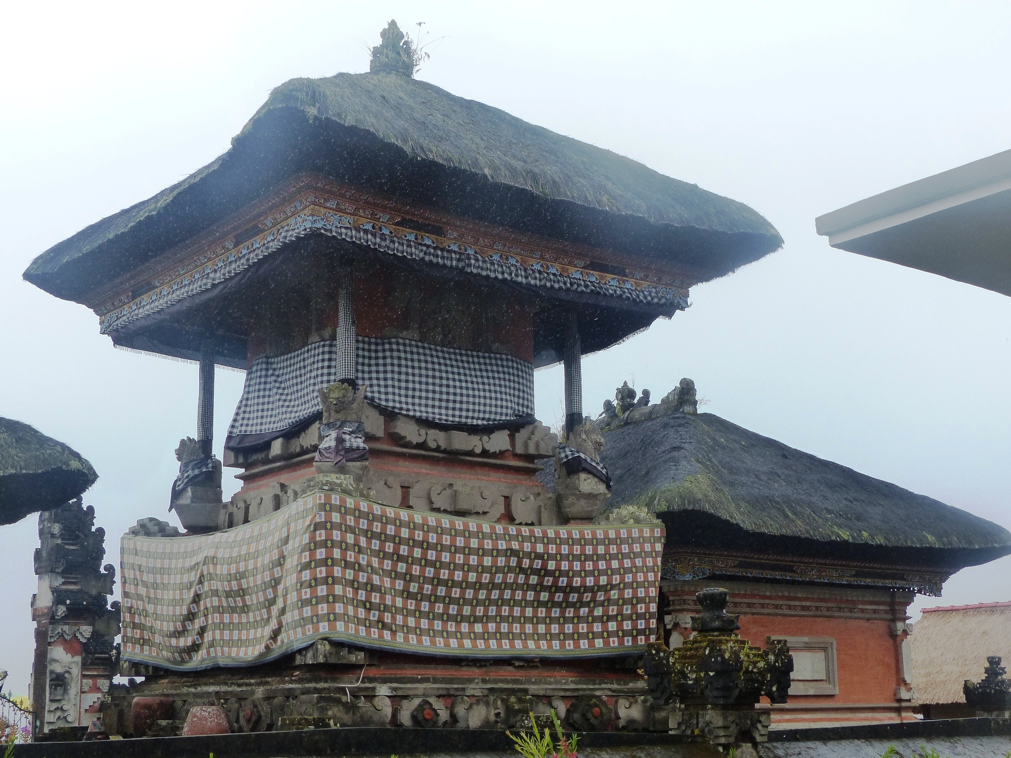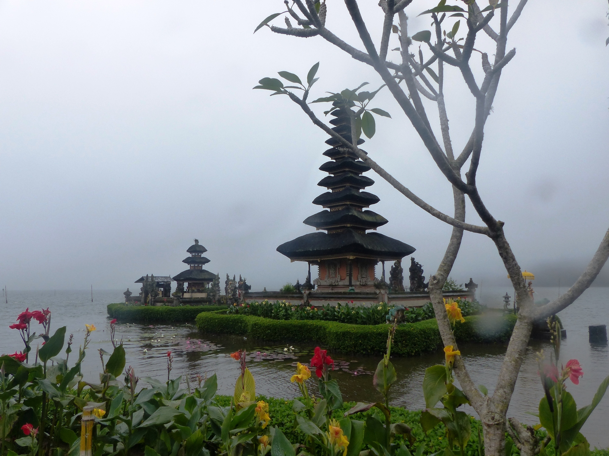 Puis, sous une pluie légère, nous visitons le Pura Ulun Danu Bratan, et découvrons notre premier temple où pas mal de touristes se pressent près du lac Bratan. Edifié au 16e siècle, il est composé de 4 temples dédiés aux dieux Brahma, Shiva, Vishnu et Dewi Danu, la déesse des eaux.