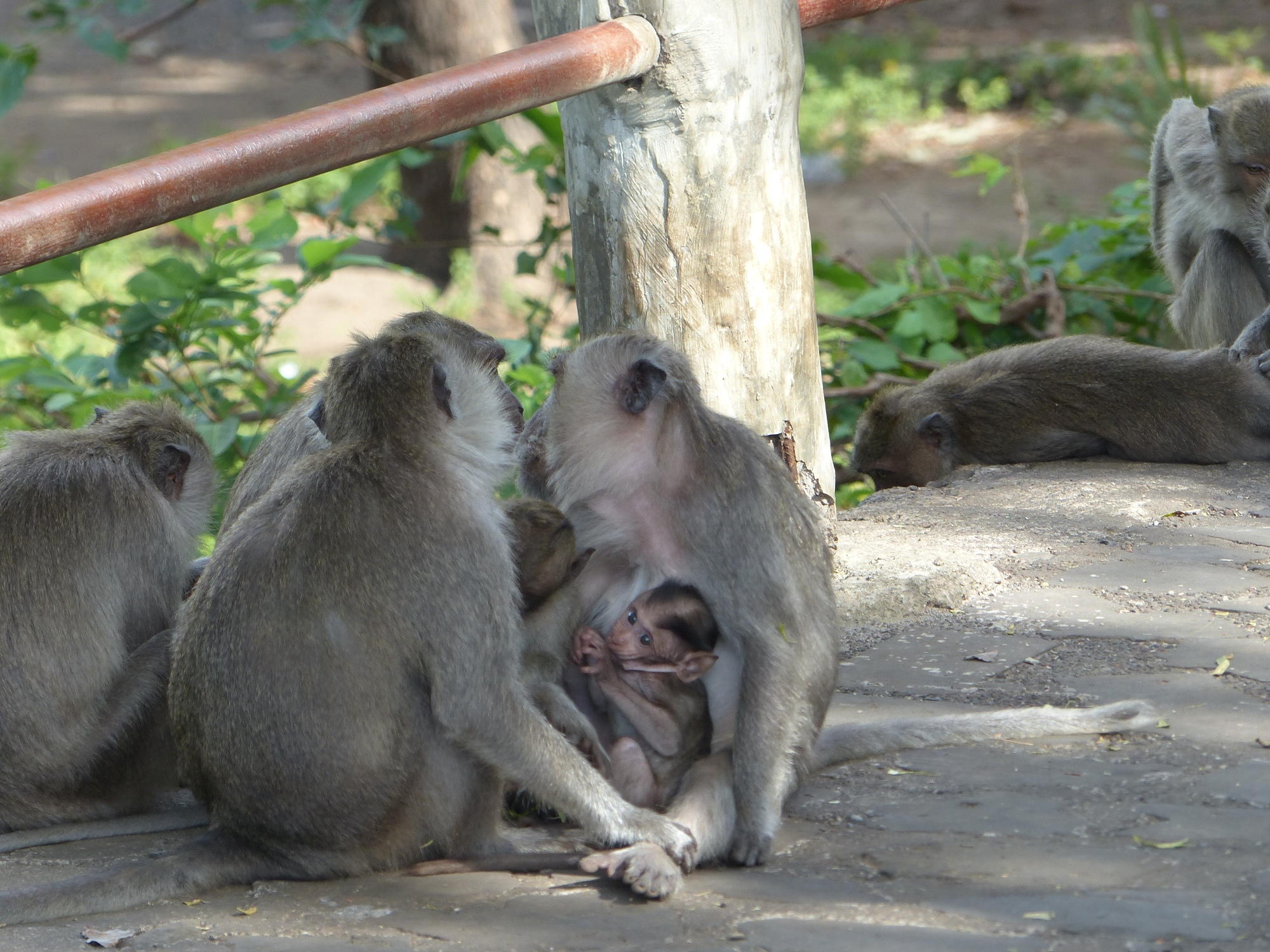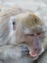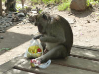 Nous sommes accueillis par des singes gourmands ....
