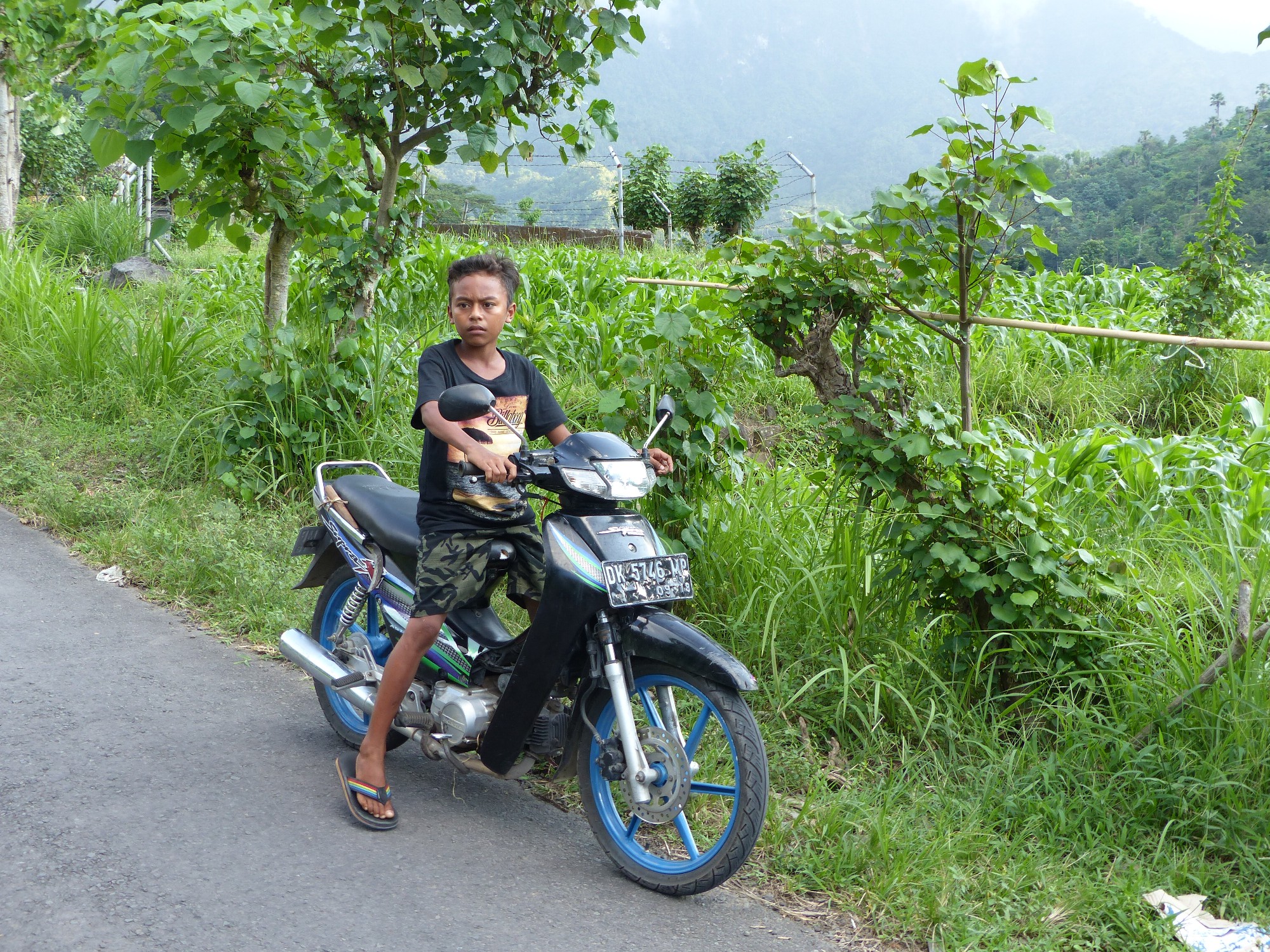 Maintenant un petit mot sur les motos .... elles grouillent partout ... sont surchargées bien souvent et notamment par les enfants ... un devant, un derrière, entre les parents ... et celui qui est devant est debout et bien souvent il sait à peine marcher ..... stupéfiant ....