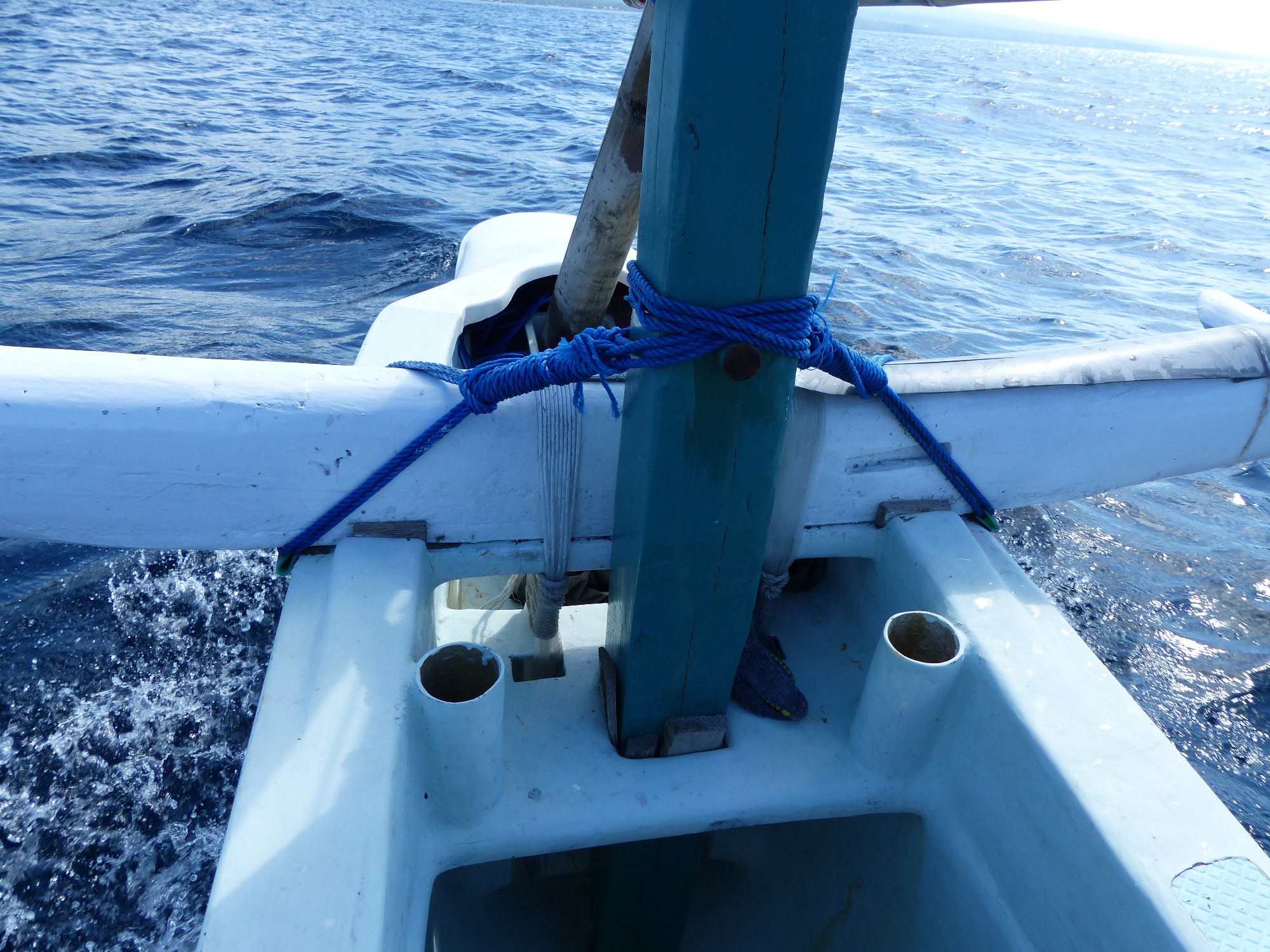 Un après midi, nous avons fait une balade en bateau traditionnel ... un peu bricolé il faut bien le dire .... le mat tient avec je ne sais quoi .... mais c'est agréable cette promenade .....