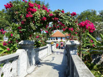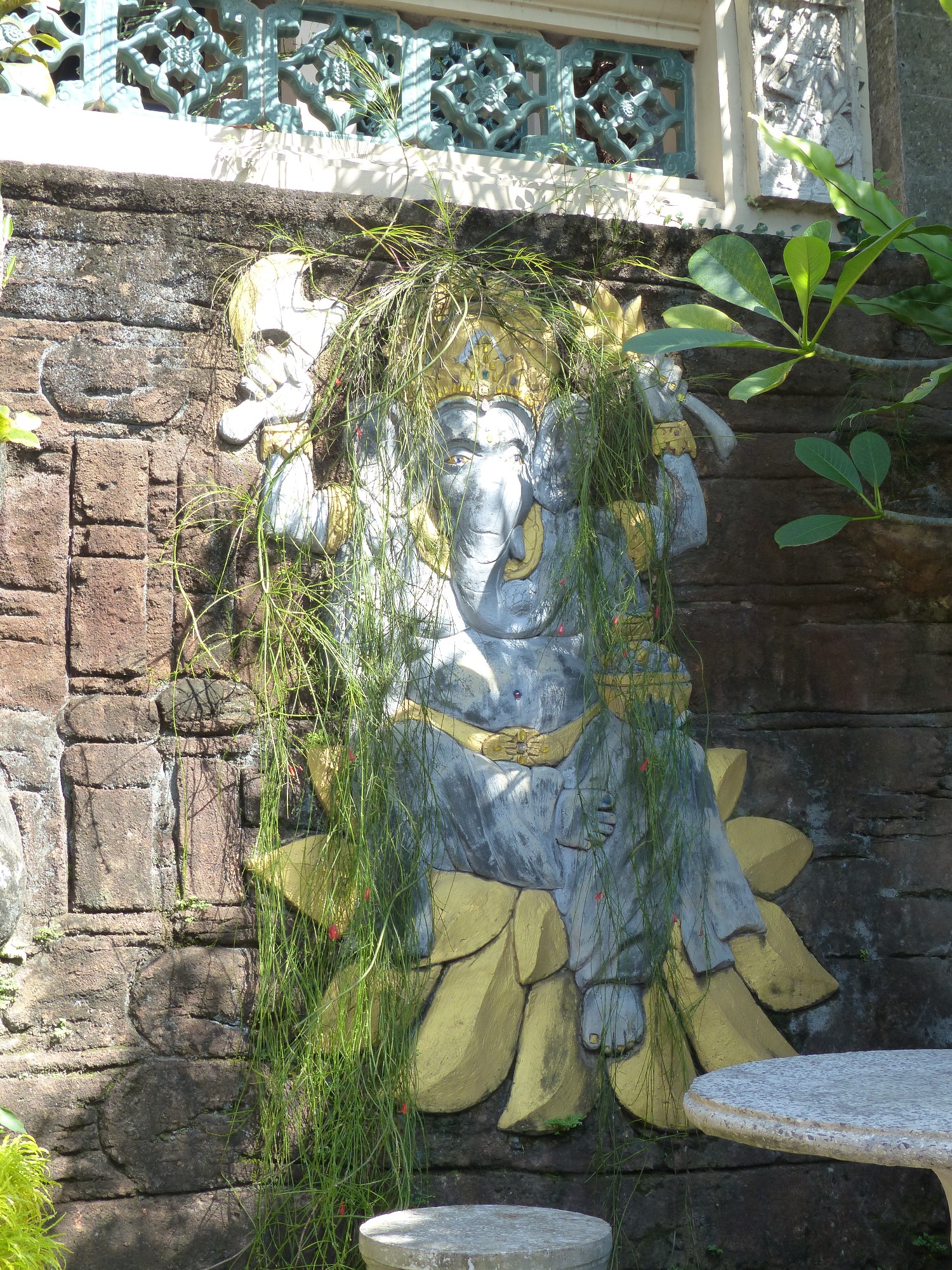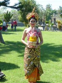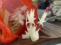 A l'entrée, la guichetière passe son temps en confectionnant des petits paniers en feuille de palme pour les offrandes ... c'est vraiment un beau travail très délicat .... Et une danseuse dans le parc