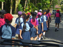 Les écoliers se préparent à la fête nationale et on en croise dans les rues, marchant au pas, garçons ou filles .... tous en sont ....