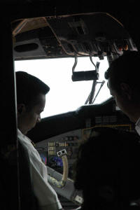 Enfin nous partons ... c'est vite dit .... il y a surbooking ... et oui ... trois passagers sont en trop.... Discussions ... palabres .... les pilotes tentent de nous laisser sur le terrain ... mais c'est sans compter avec notre détermination à rester déjà soudés ....