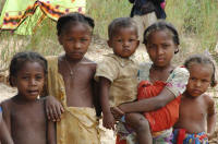 Nous nous abritons sous un arbre ....car .... l'aventure continue .... n'ayant pas leurs sacs, donc pas leur sacs de couchage non plus, nos amis doivent recevoir une couverture que le guide va aller acheter au village voisin le plus proche ( à une h de marche) Nous nous installons donc .... et commençons à attendre devant des dizaines d'enfants qui nous regardent sans rien dire .....