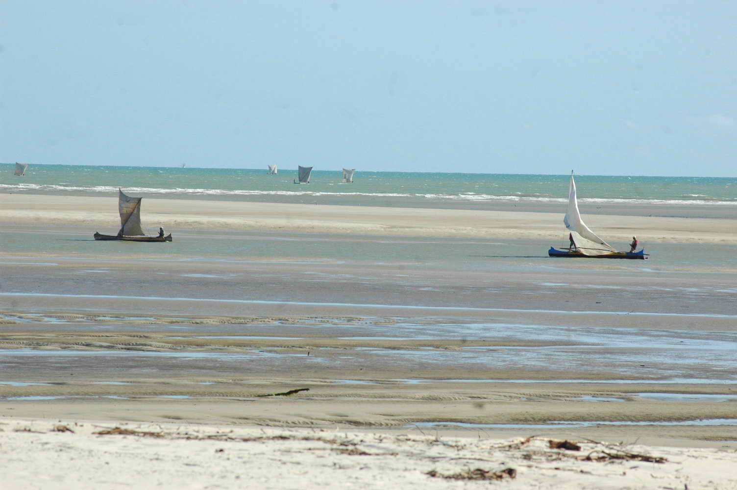 Les pêcheurs rentrent ..... mais la marée est basse l'eau se fait rare .....