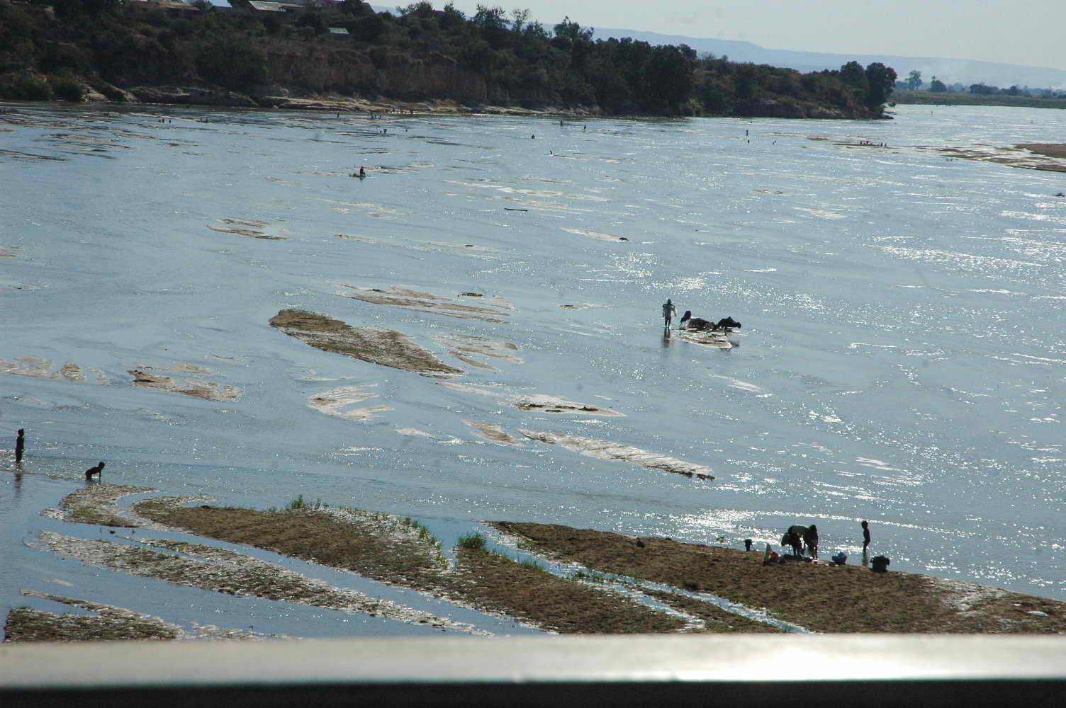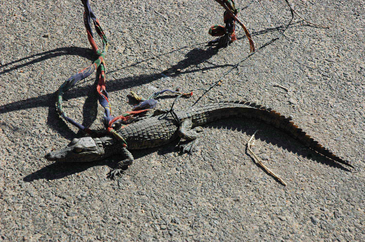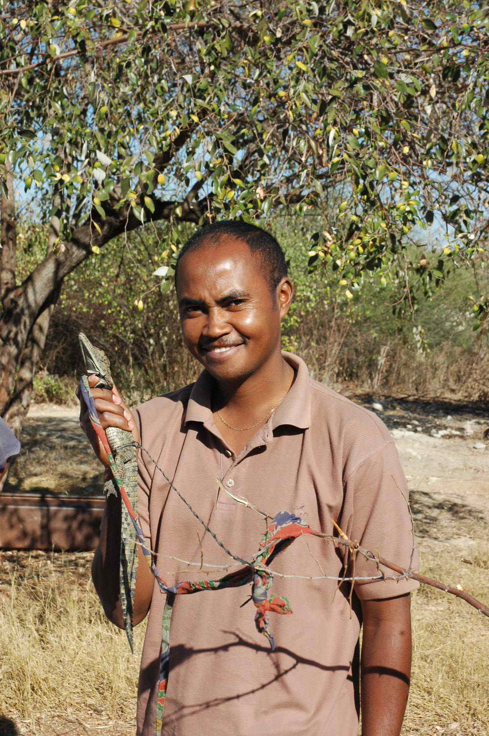 Arrêt à un barrage où un homme nous attend avec un crocodile minuscule ... il veut nous le vendre ... hé oui !!!