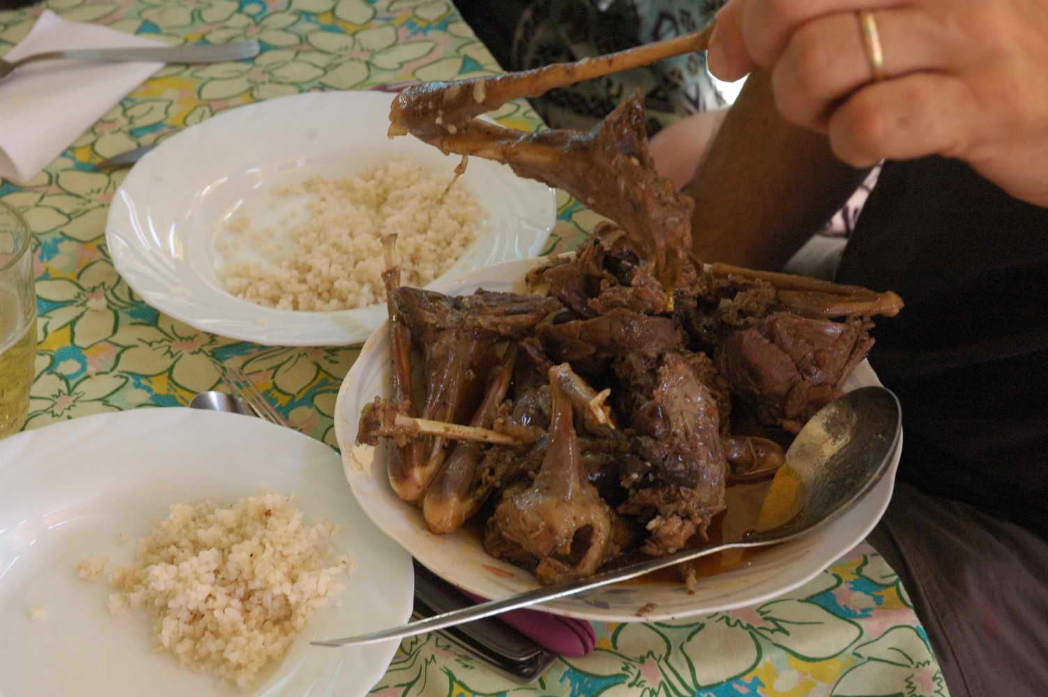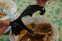 Halte de midi dans un petit village .... et nous mangeons quoi ??? tenez vous bien !!! De la chauvesouris !!!!! Un vrai délice !! J'ai adoré ça !