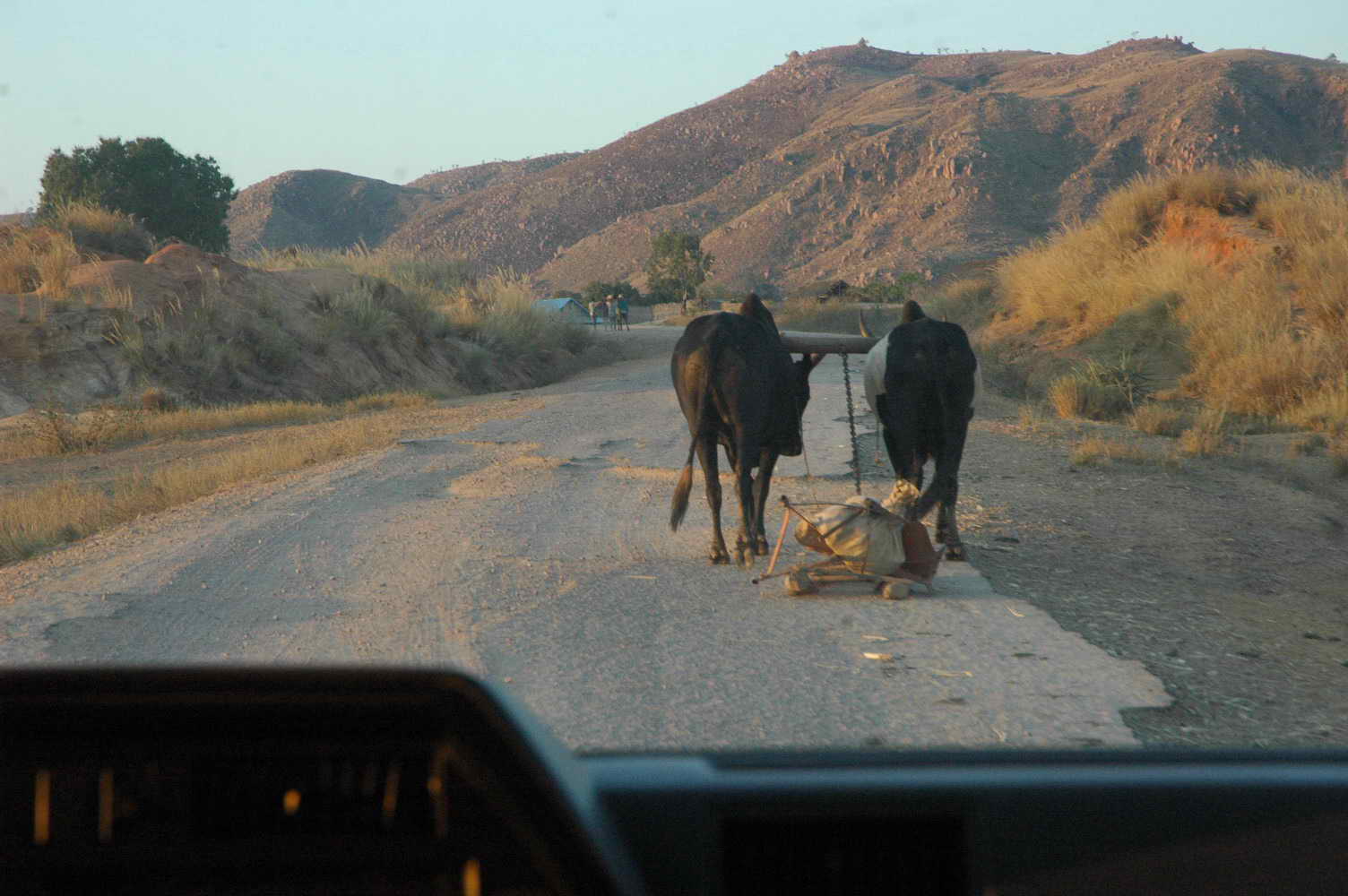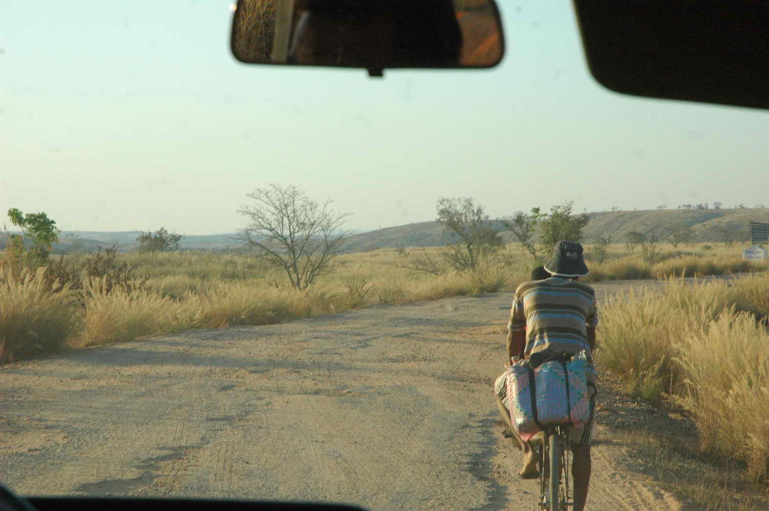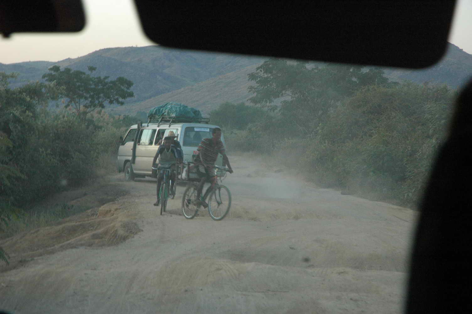 Route défoncée ..... doublant tantôt cyclistes tantôt zébus ... tantôt des gens à pieds toujours chargés .... les paysages défilent .....