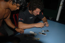 Il décida d'appeler un hydravion afin de mettre Samantha et la chnouf en sécurité, mais son portable lui échappa des mains ... et tomba à l'eau ... Immédiatement l'équipage se mit en 4 pour repêcher l'objet et surtout la carte sim .....