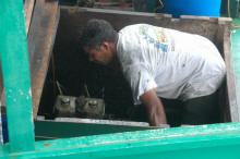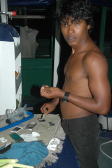L'hydravion n'arrivant pas, Phil Bond décida de prendre le dhoni pour rentrer sur Malé mais soudain, l'huile et l'eau giclèrent !!!!!! Le moteur était noyé !!!