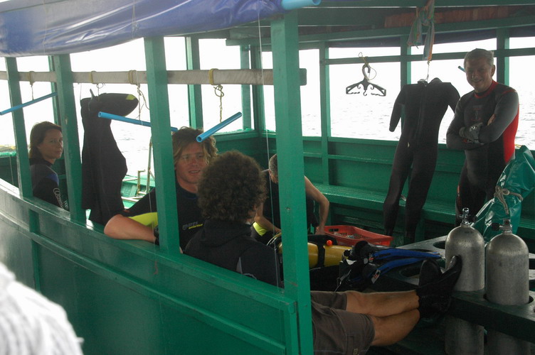 Nous repartons sur un nouveau bateau un peu plus grand et sommes 9 plongeurs à bord.