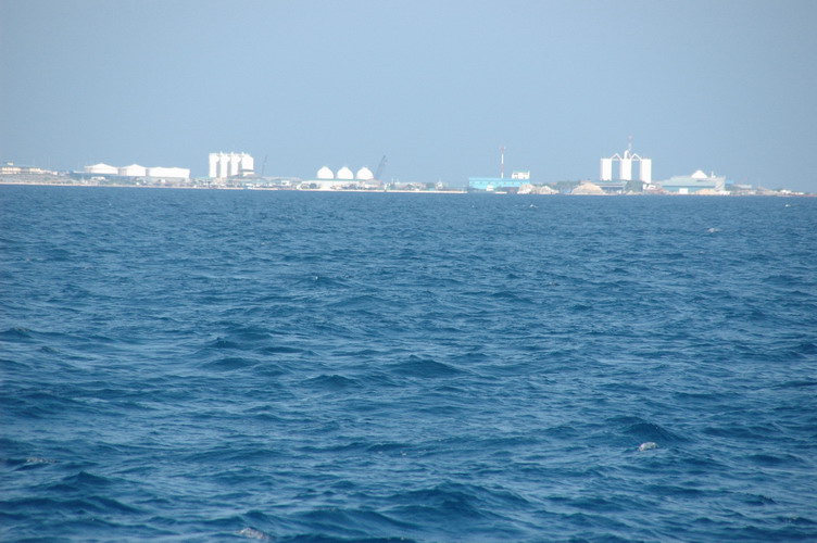 Aux Maldives, chaque ilot a ses responsabilités ... ici l'ile industrie avec l'incinérateur et l'usine coca cola
