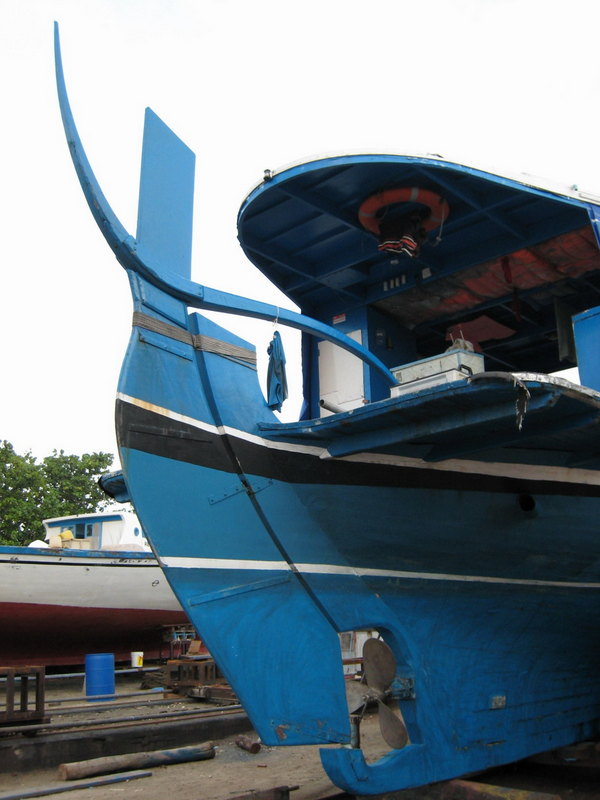 Et nous voila repartis pour une semaine ... avec une première halte dans une ile spécialisée dans la construction des bateaux ... le gouvernail traditionnel qui s'utilise avec le pied est superbe.
